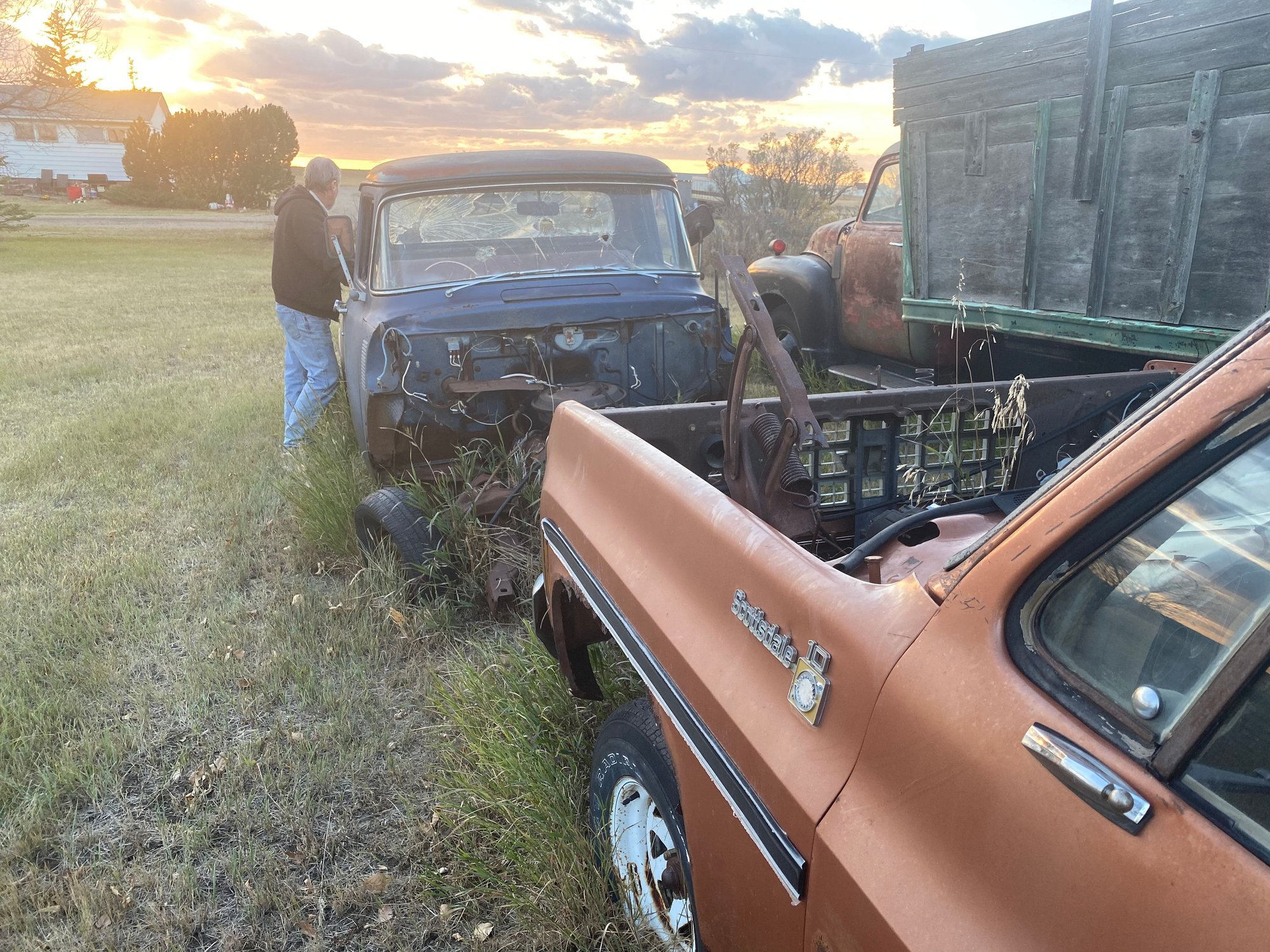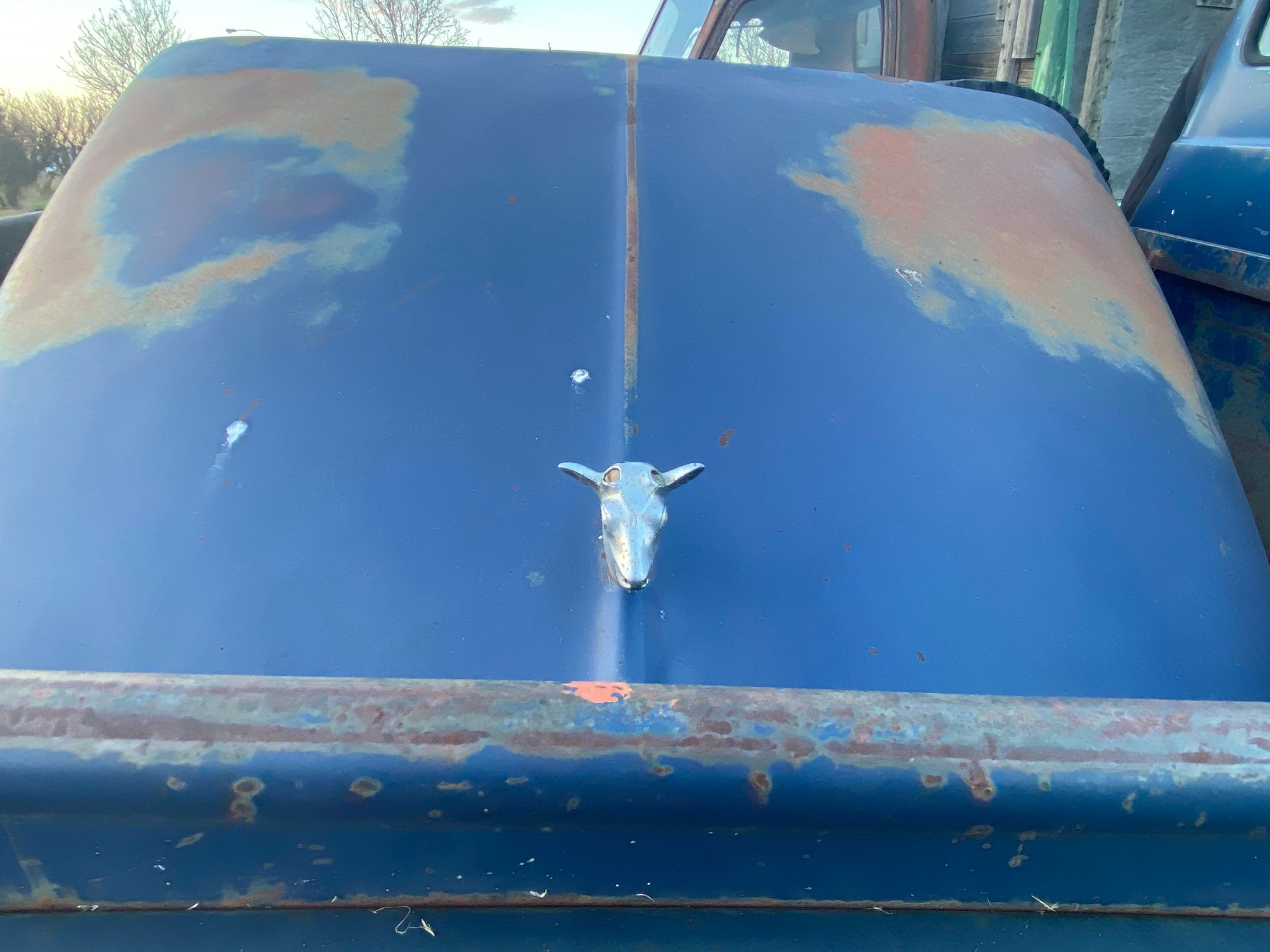 So my little bro has decided to kick dad in the behind a bit. Went and loaded his 56 up and he’s taking it to his place to start working on it. Would be great to see both of these trucks back on the road. I should of got better pics. But there’s a radio in it that I’m not sure if it’s factory and then there’s this hood ornament that I’m hoping some of you can shed some light on