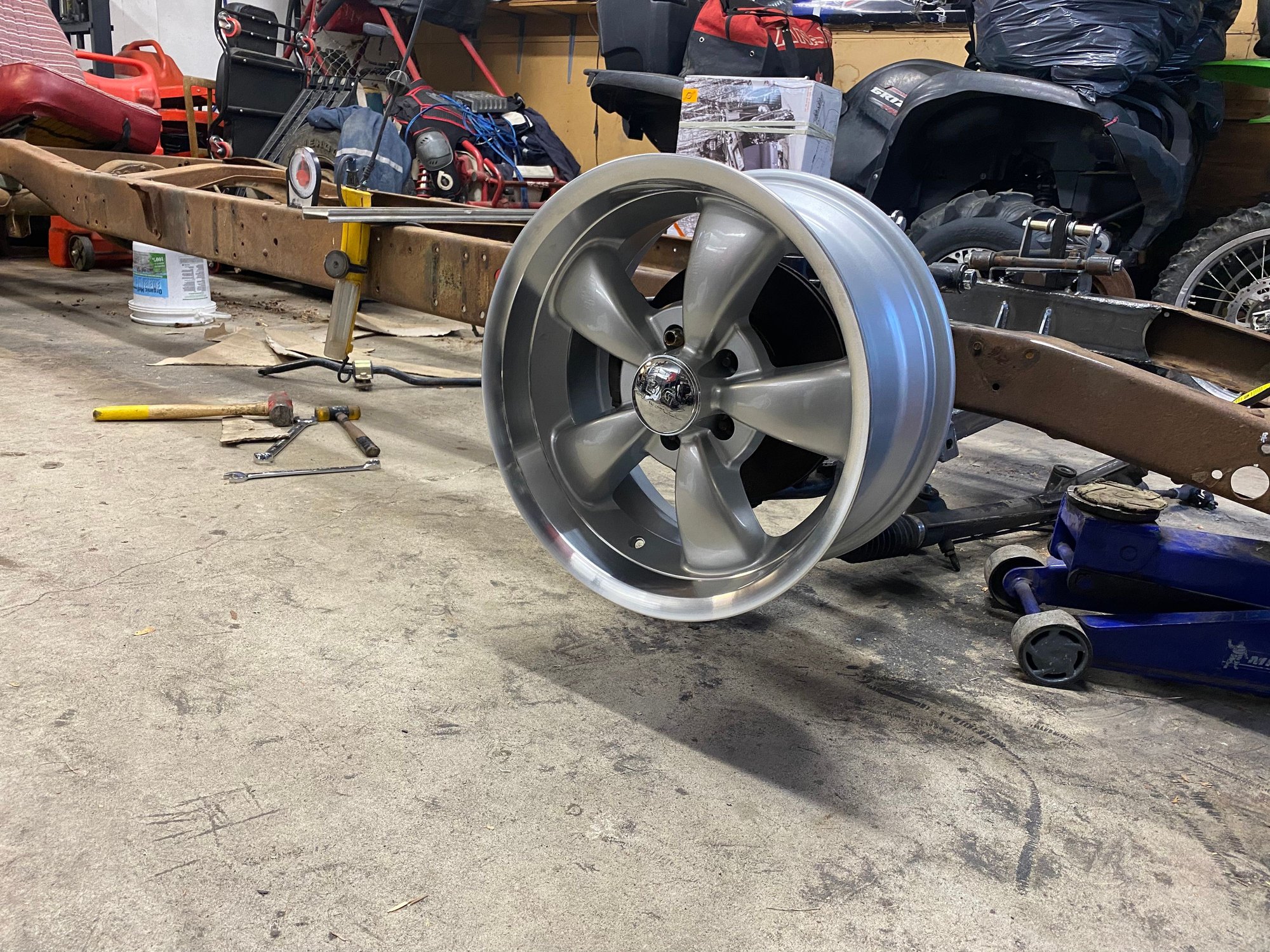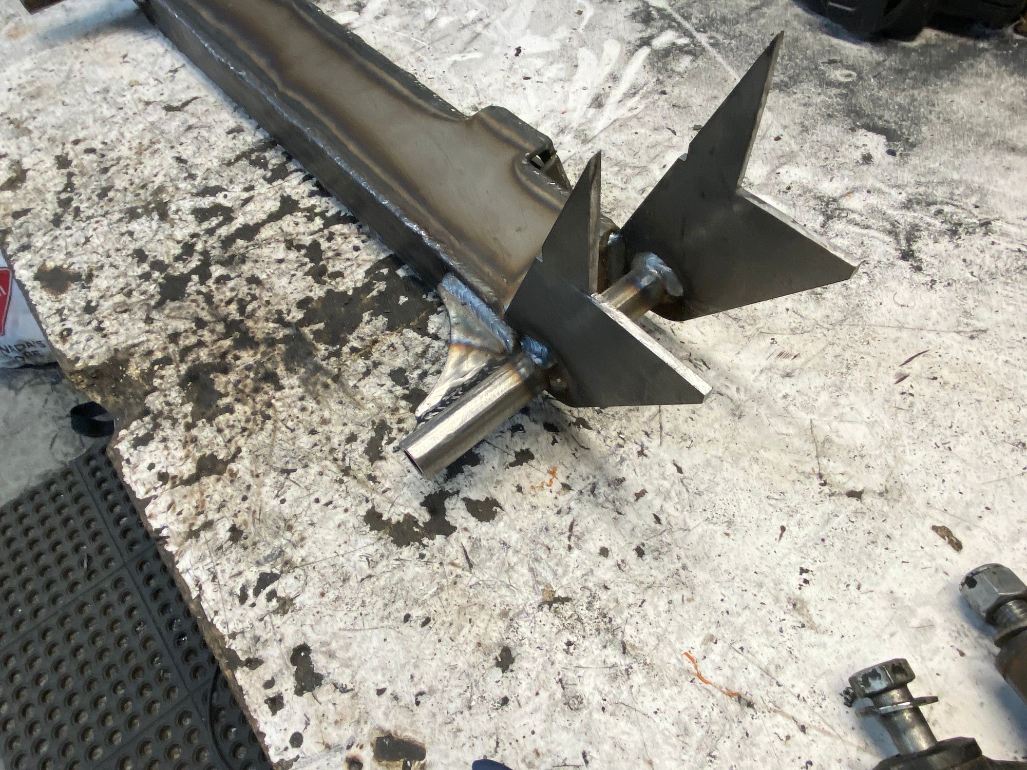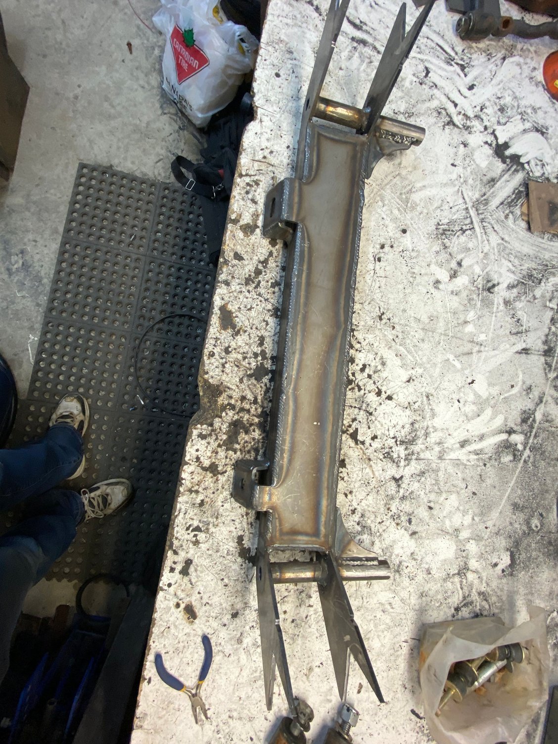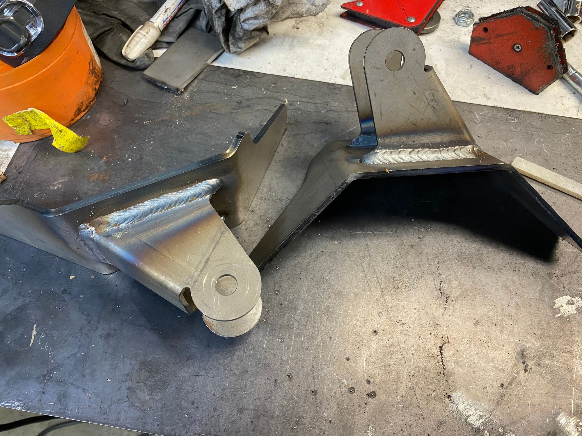 Redid the rear bottom links. Moved them to inside the frame. Where I had them I wasn’t going to be able to put the shocks on. I could of went farther out but I jumped the gun and welded the front anchor mounts. Im not using that crossmember for the upper mount. Just needed something to mock it up with. But will be making something very similar
