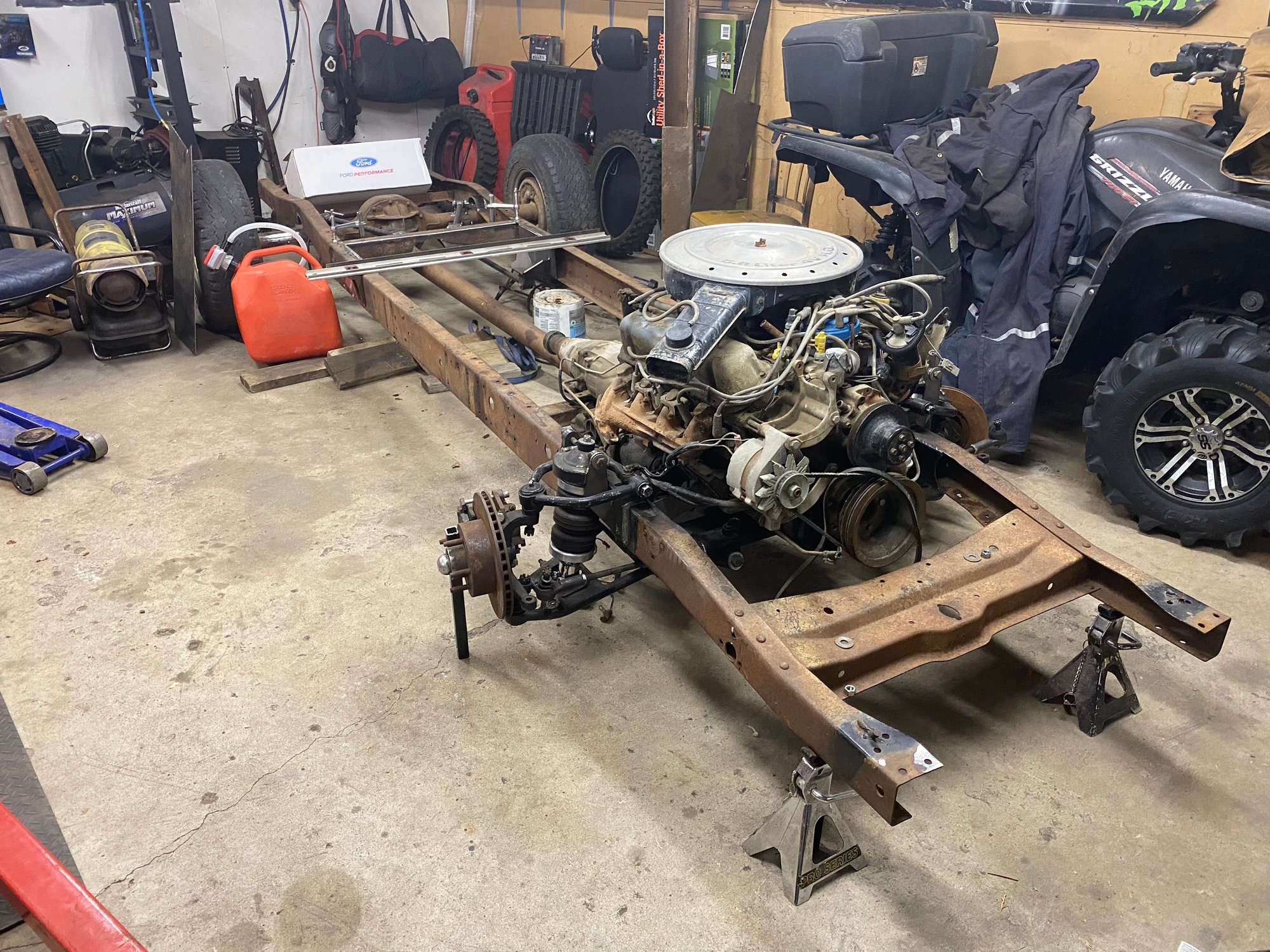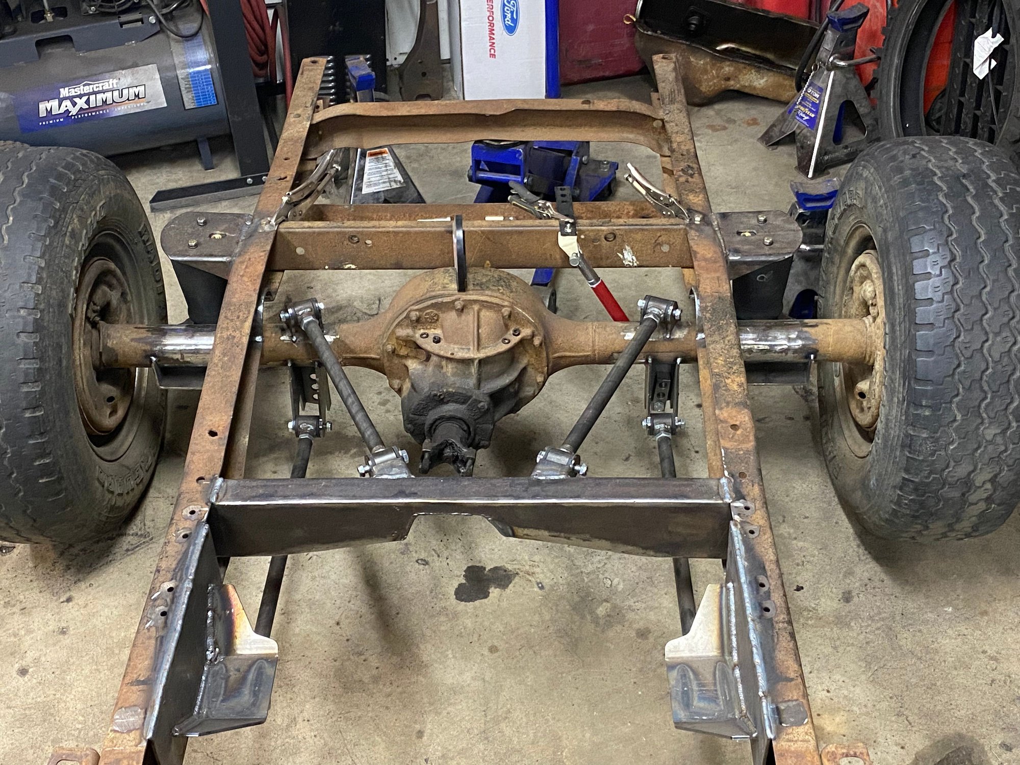 Little more progress. Made some mounts for that bags and got them welded in. Went behind the axle and now wondering if I should of went in front. Ordered some QA1 TS403 shocks for it as well.