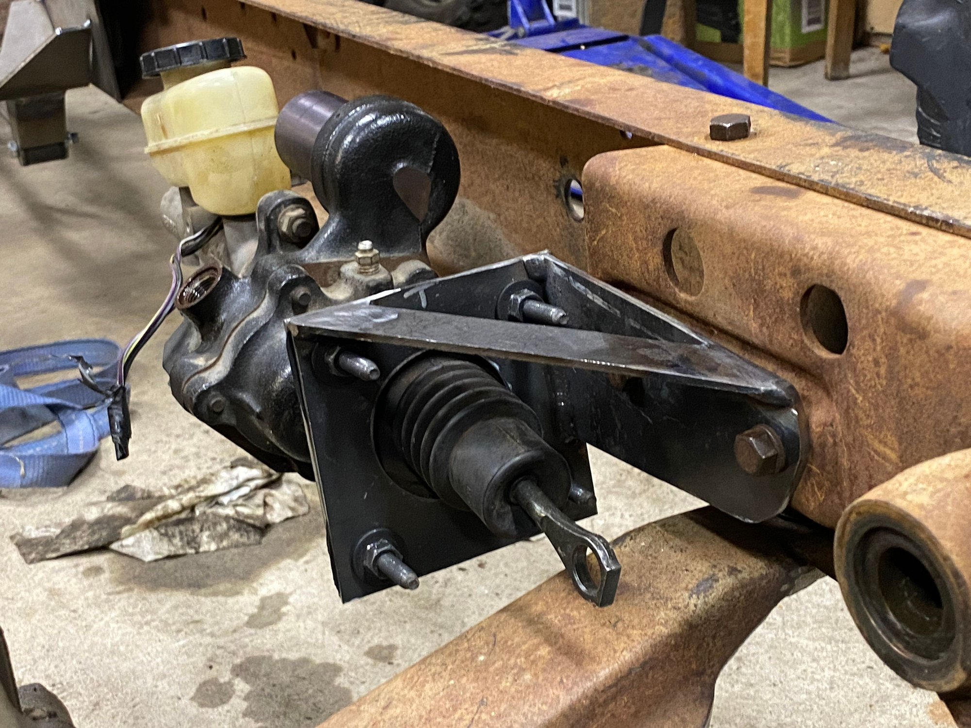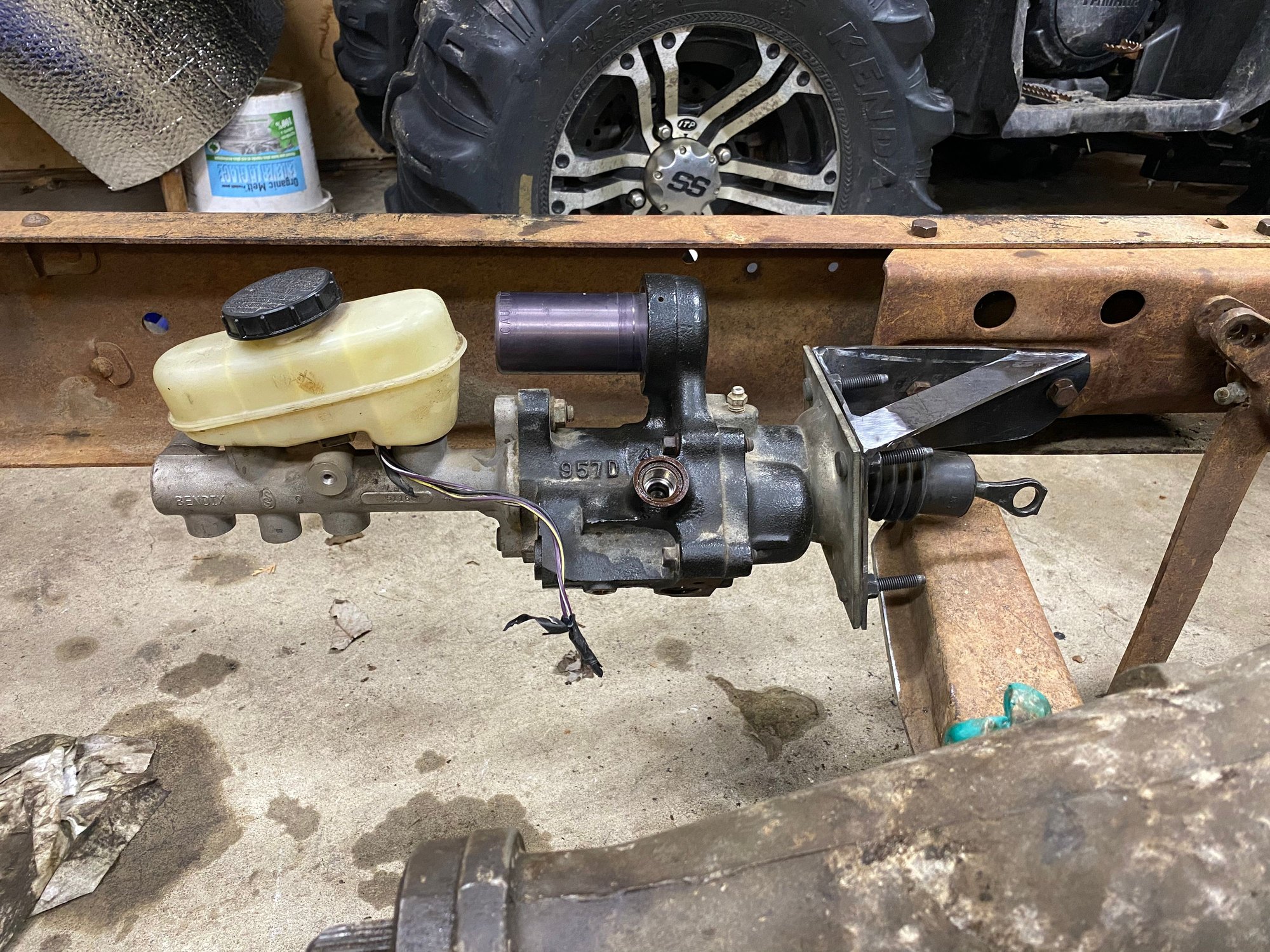 Picked up a hydro boost out of a mid 90’s mustang for my power brakes, $30 from a junk yard can’t go wrong with that. Will have to change out the the reservoir to one that sits level. Now to try and figure out how to mount this to the frame.
