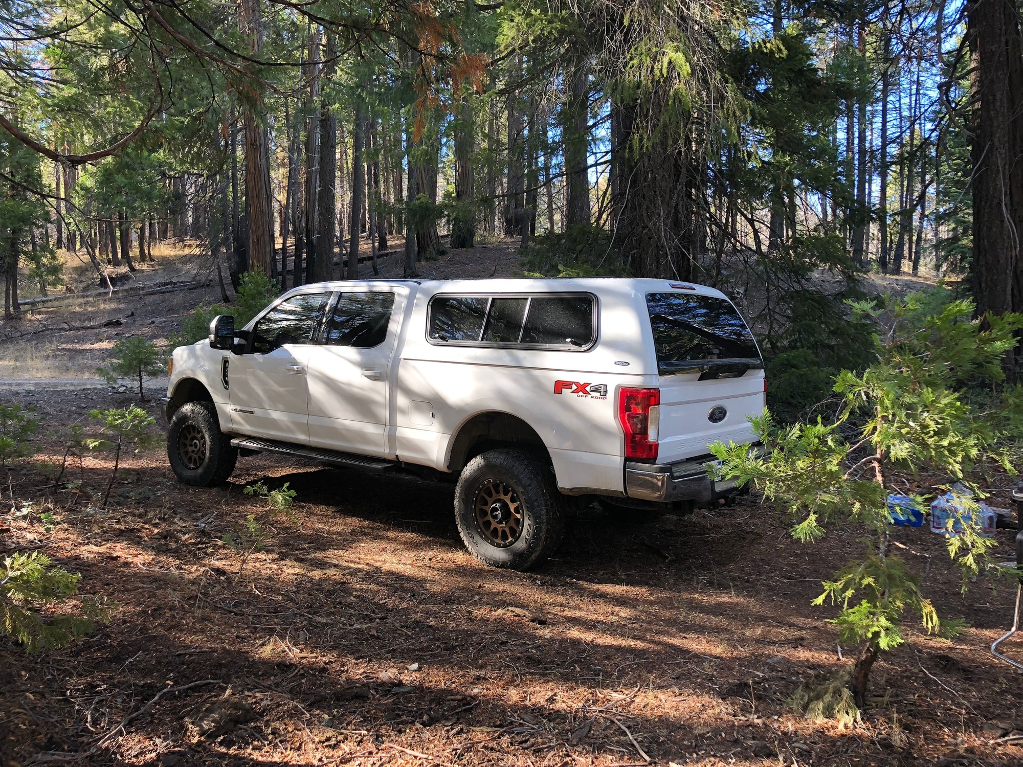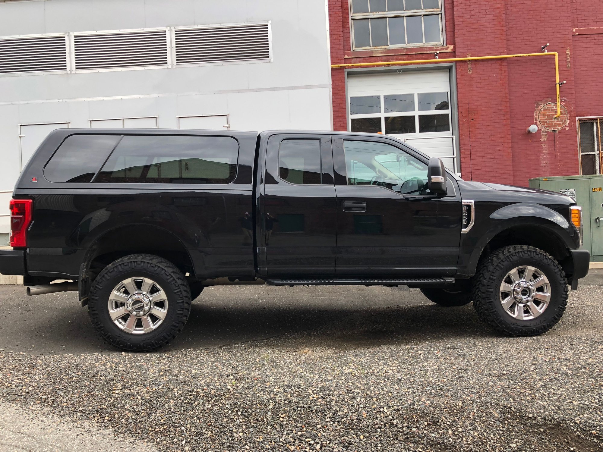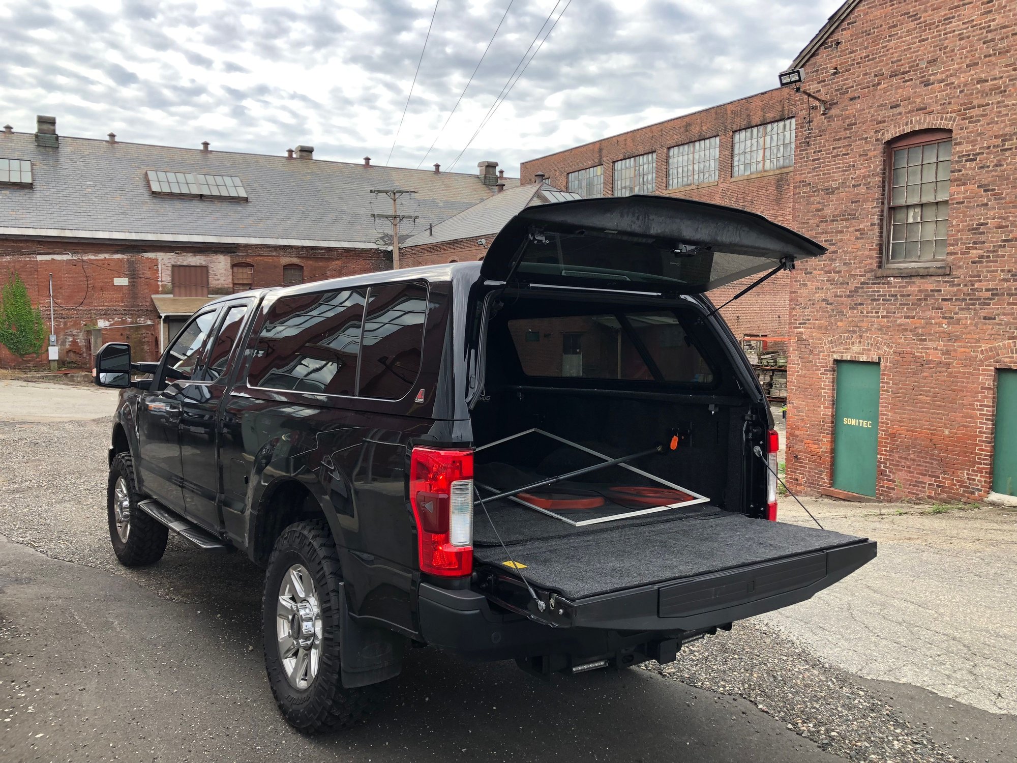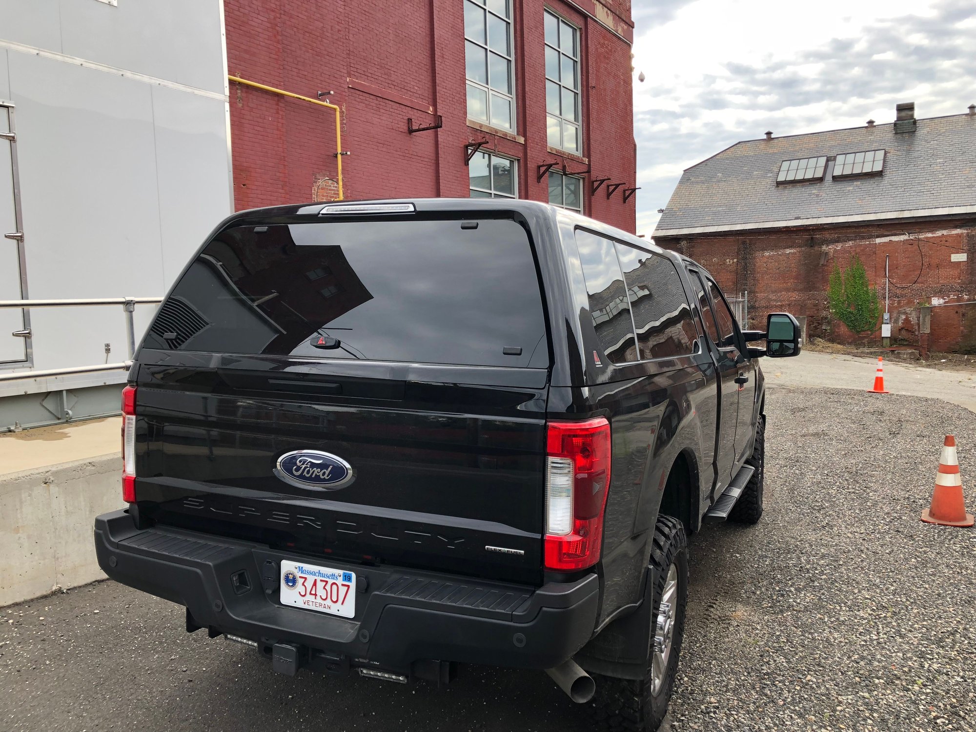 SnugTop XtraVision on my 2017 F350. The truck cap is pretty level with the truck cab. I attached a Larson Electronics antenna plate to the CHMSL for my magnetic cell phone booster antenna.