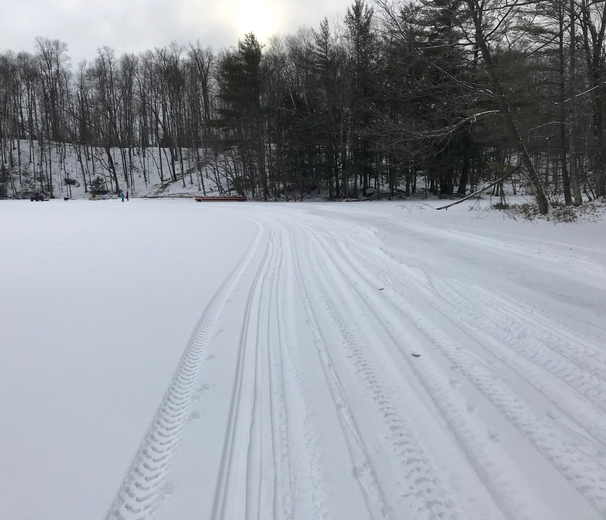 The 2020-21 cross country ski season is off to a late start. With only about 2 inches of snow on the ground, skiing laps on the lake is about the only alternative: