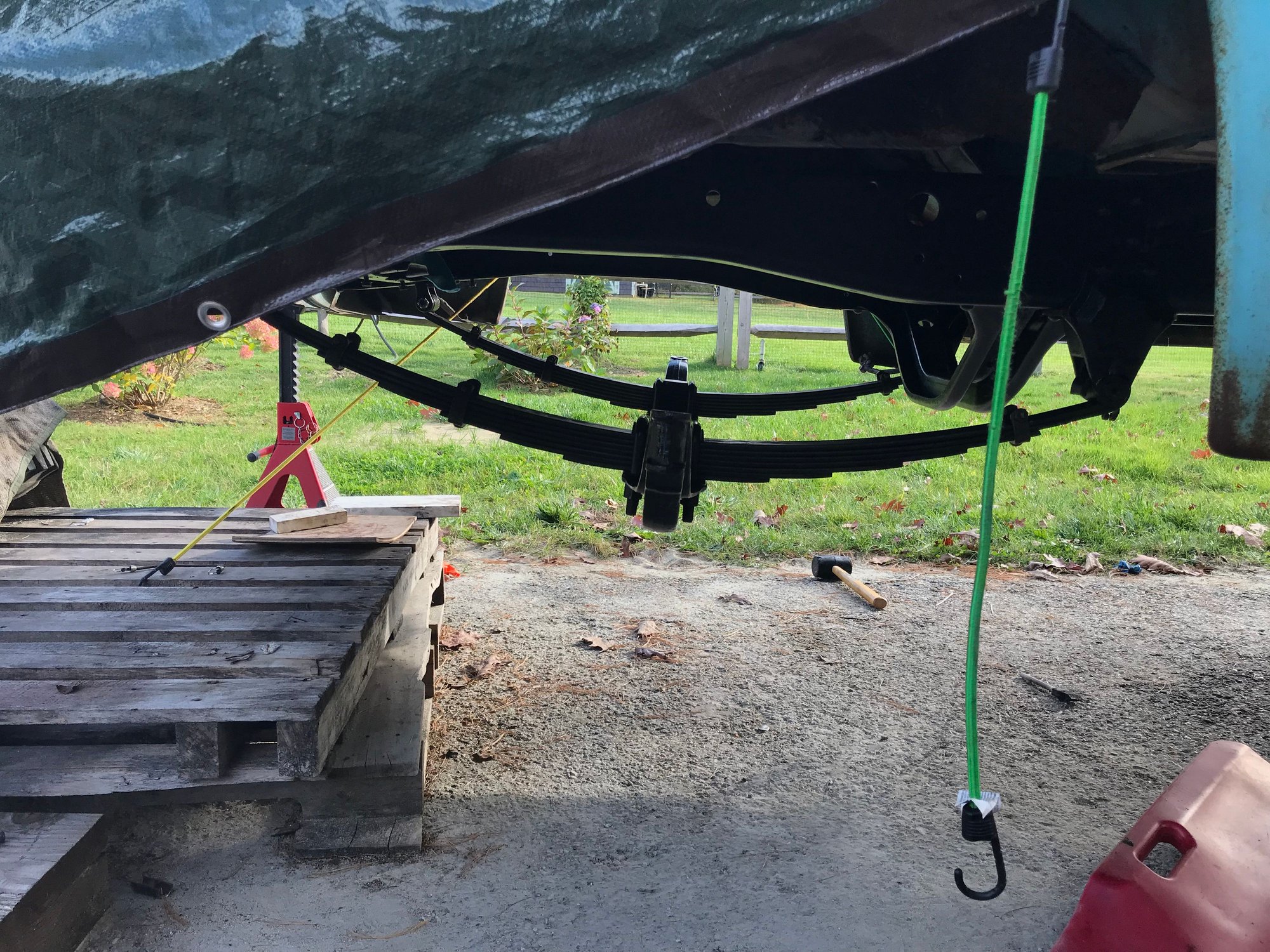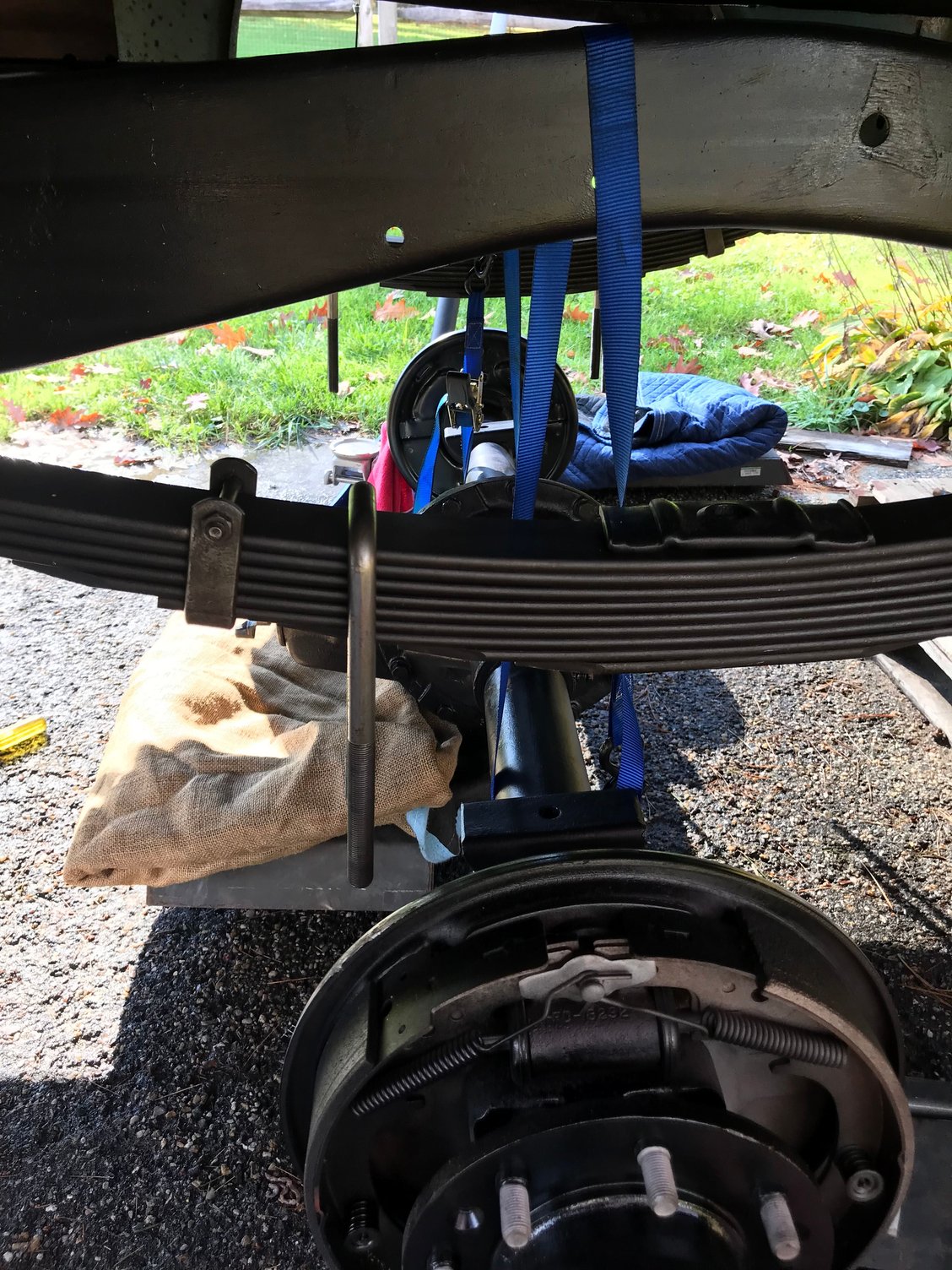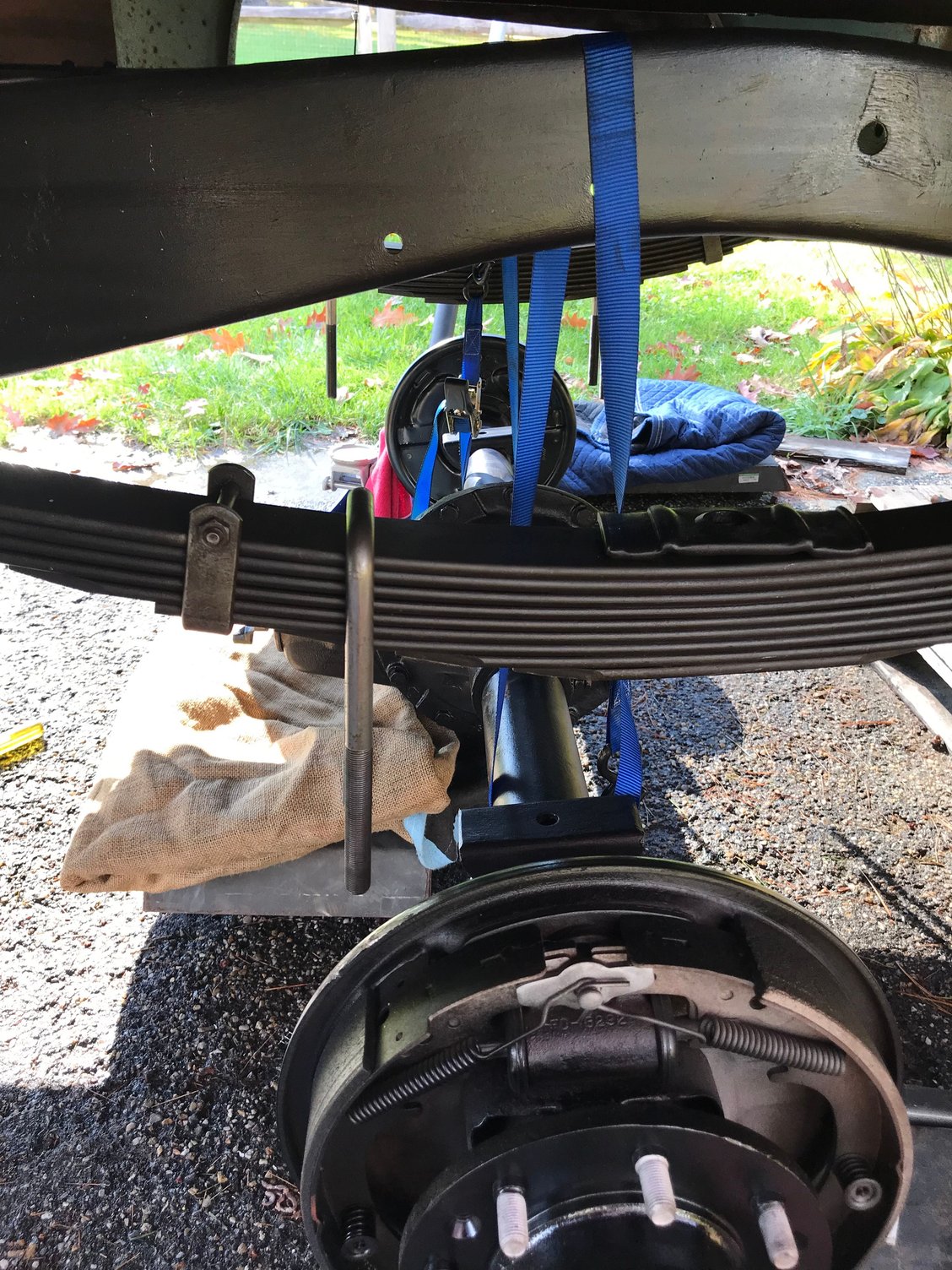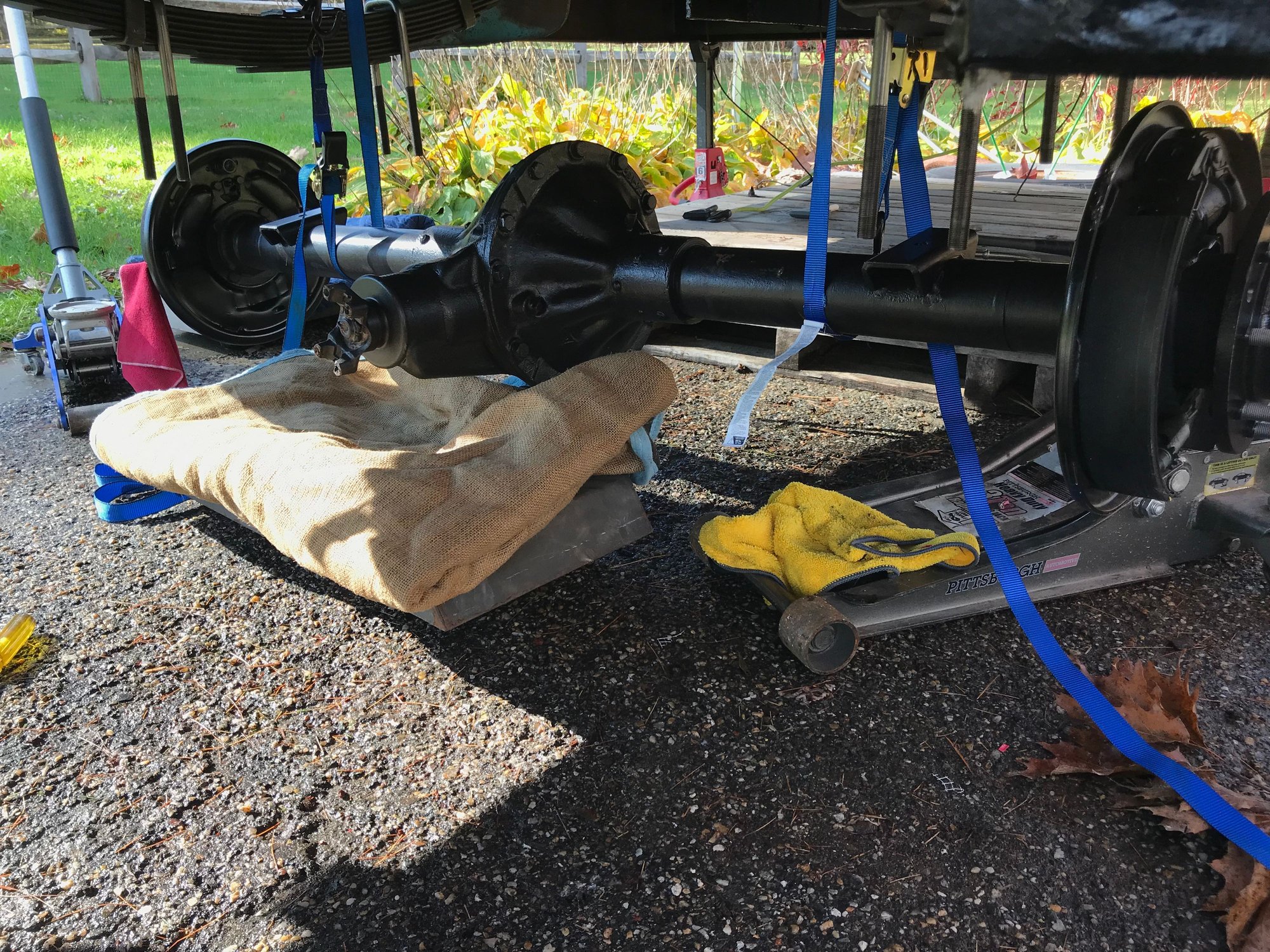 i connected 2 ratchet straps on each end inside the spring perch. I ratchet it up was about 5 inches from spring. I jacked up one side at a time and adjusted the straps along the frame and differential to get the rear to swing into the right spot. With the lower plate and u bolts in place I slowly snugged up the nuts and adjusted the diff to align with the springs.