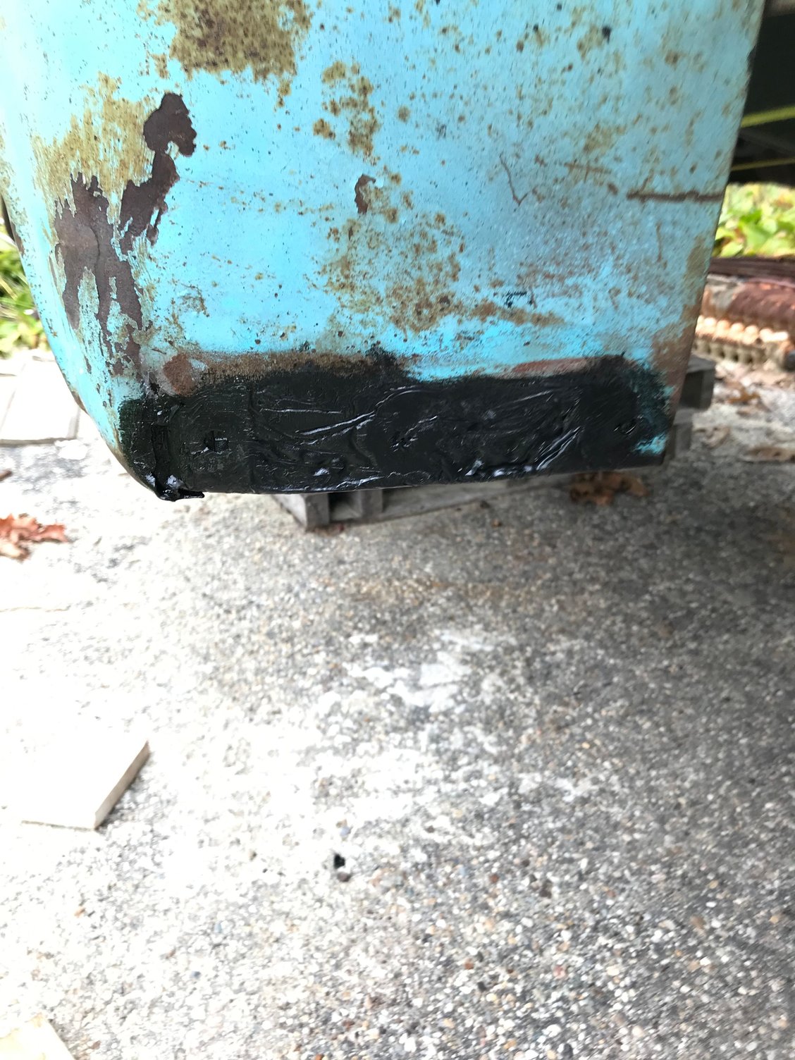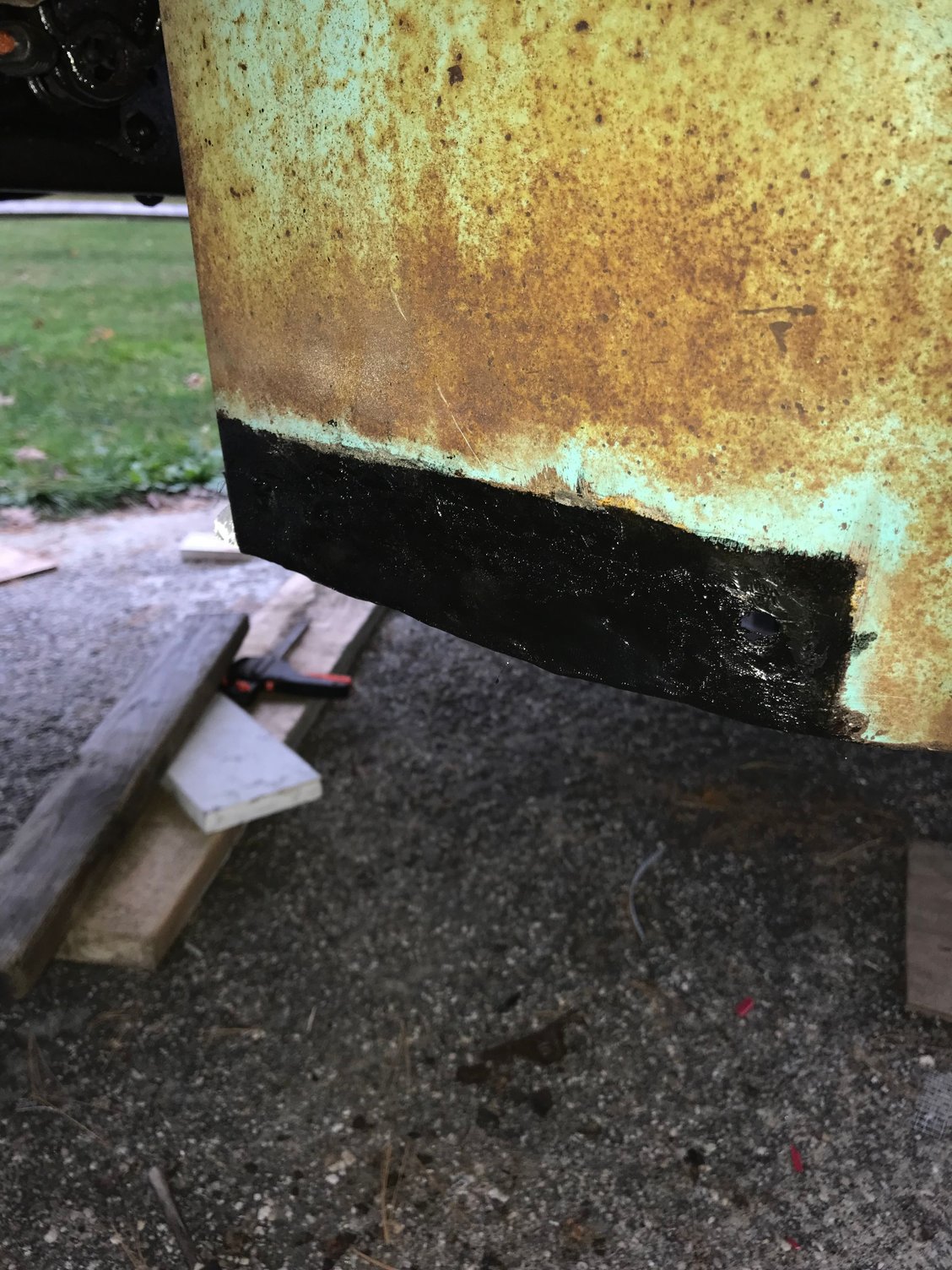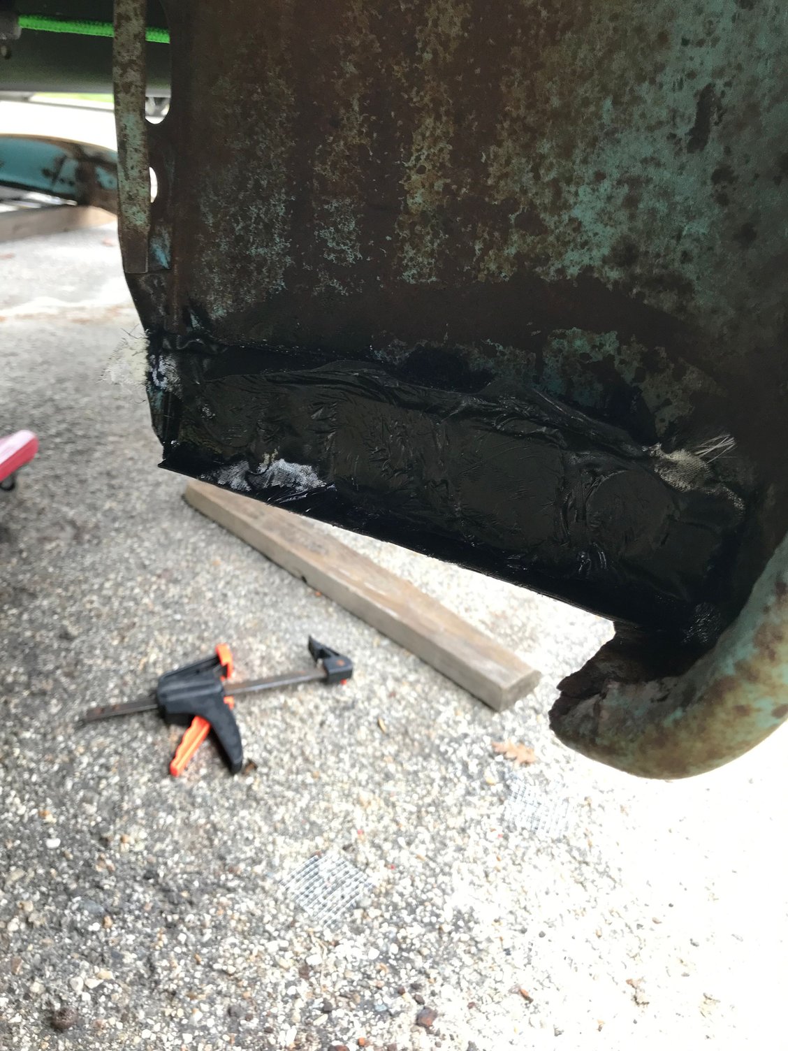 Almost finished reinforcing the rear fenders. It’s basically done but I want to put one more coat of POR patch on to smooth out any rough spots and depressions.