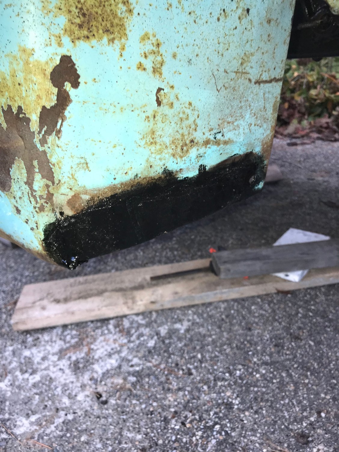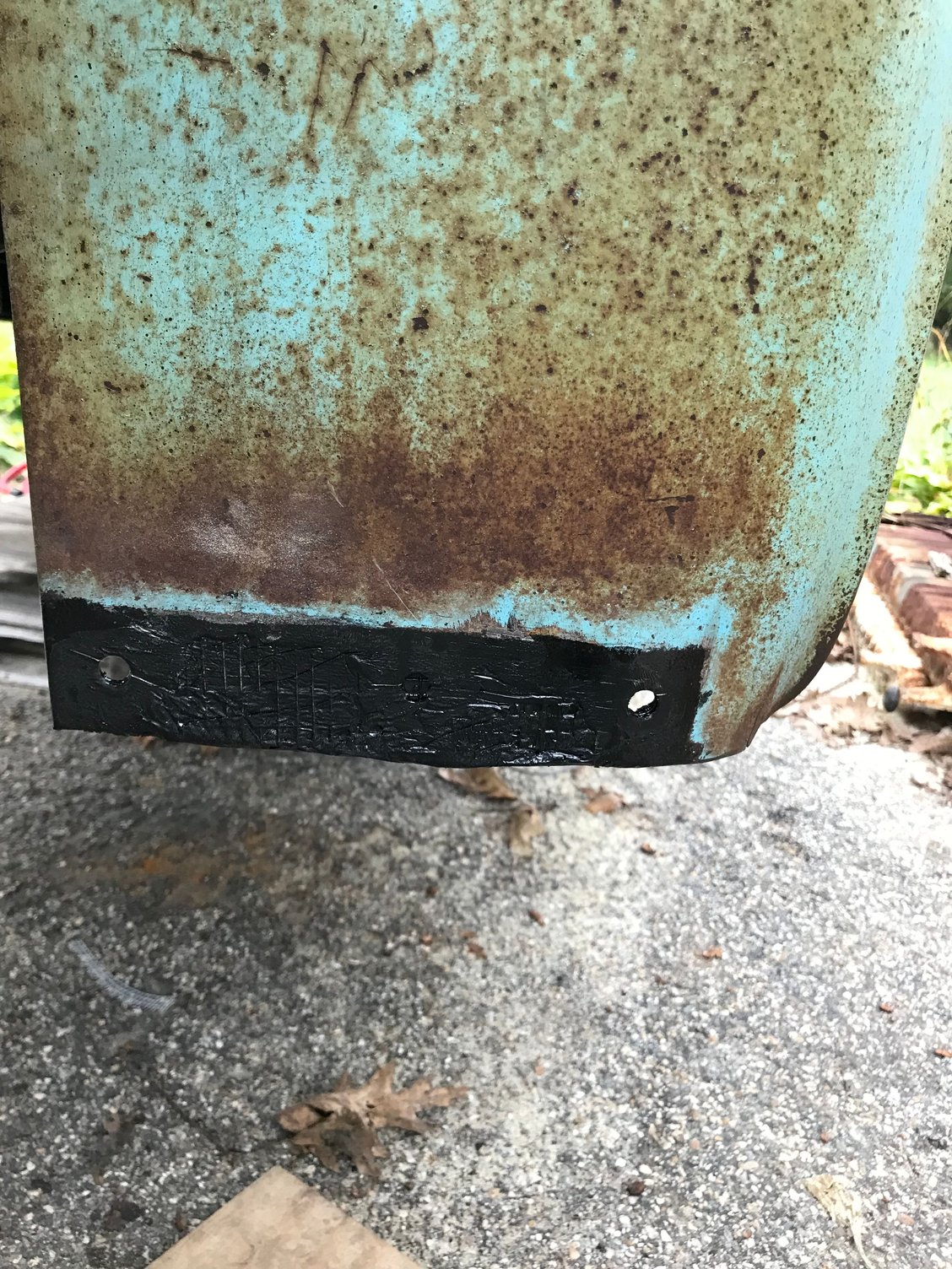 Basically I soaked the rusted area in POR slid the metal mesh in and reinforced with POR soaked fiberglass.