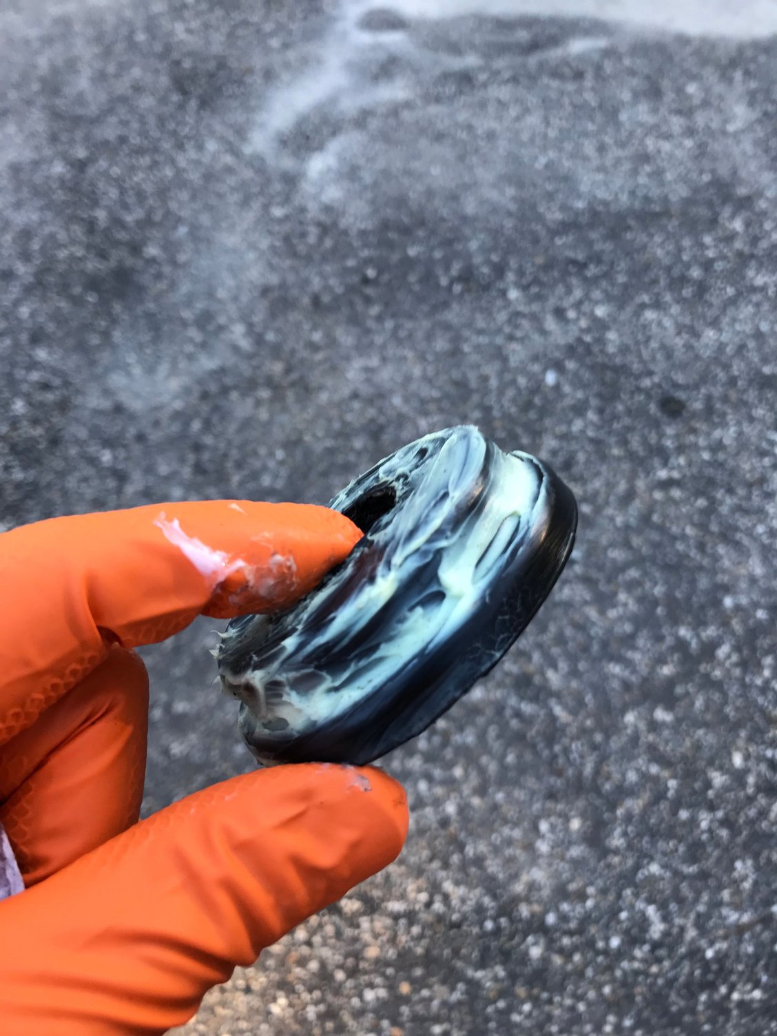 After soaking in Rust 911 and cleaned with a wire wheel. Taped off and painted hub with cast metal Duplicolor engine enamel and primer. Taped off and painted spindle