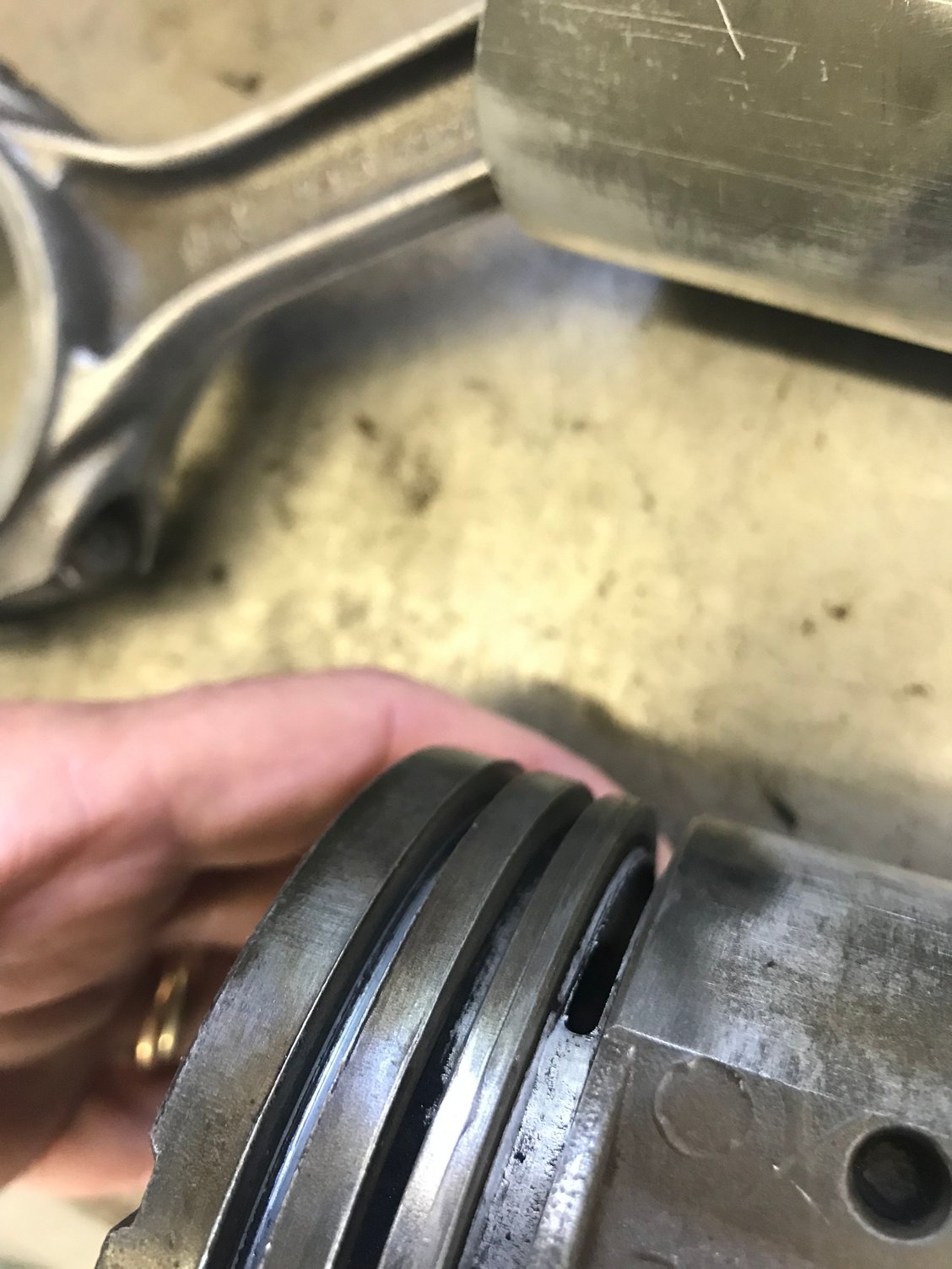 The other is the number 4 piston where the compression ring broke. You can see how it mushroomed the groove that holds the ring.