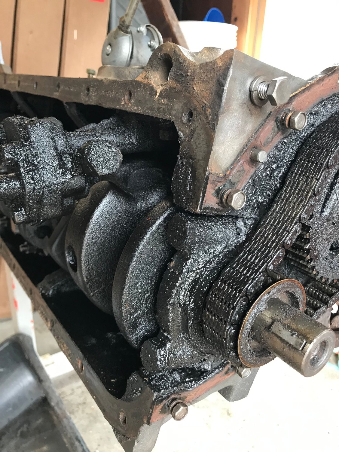 The crank is still good and so is the cam. The other engine is totally locked up and I have no idea what the condition is. The head and valve train was trashed. Given I know what I have got in this replacement motor I think I have to run with it now. Everything I have read says the block is the same on the 223 motors regardless of year. I am swapping over the '55 oil pan but the '62 valve cover has to stay as it has perimeter bolts vs. through the top of the valve cover...