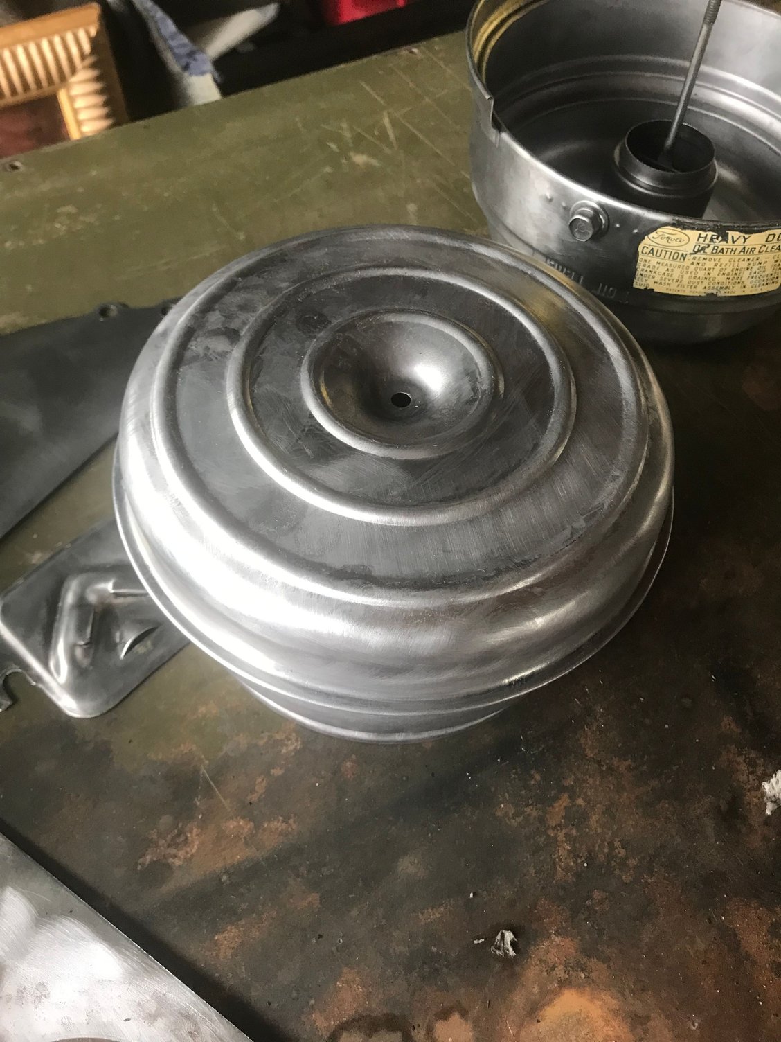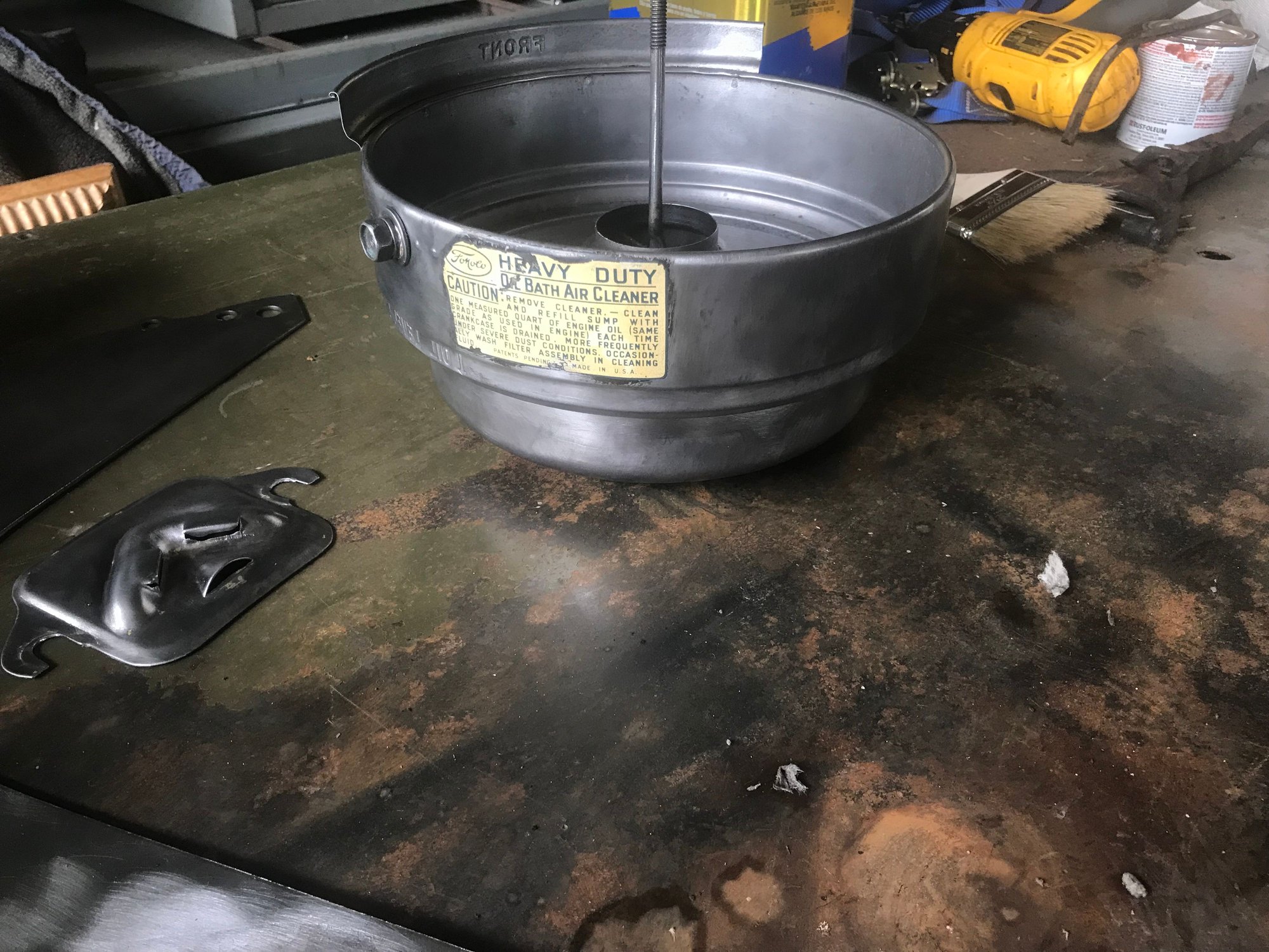 I also have to decide whether to keep the oil bath or cut out the internals and replace with a filter. I think I posted on this before but it kills me to cut up original parts since they can never be made original again but on the other hand the paper filters are more efficient and less messy. I painted the bottom half of the filter housing but am holding off on the top half until I decide whether I am going to cut them up.