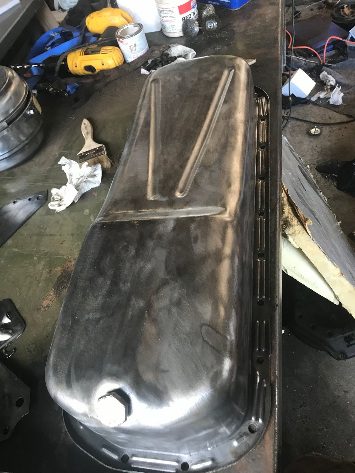 I also got the oil pan all cleaned up and ready to paint. I didn’t paint it because I ran out of primer.