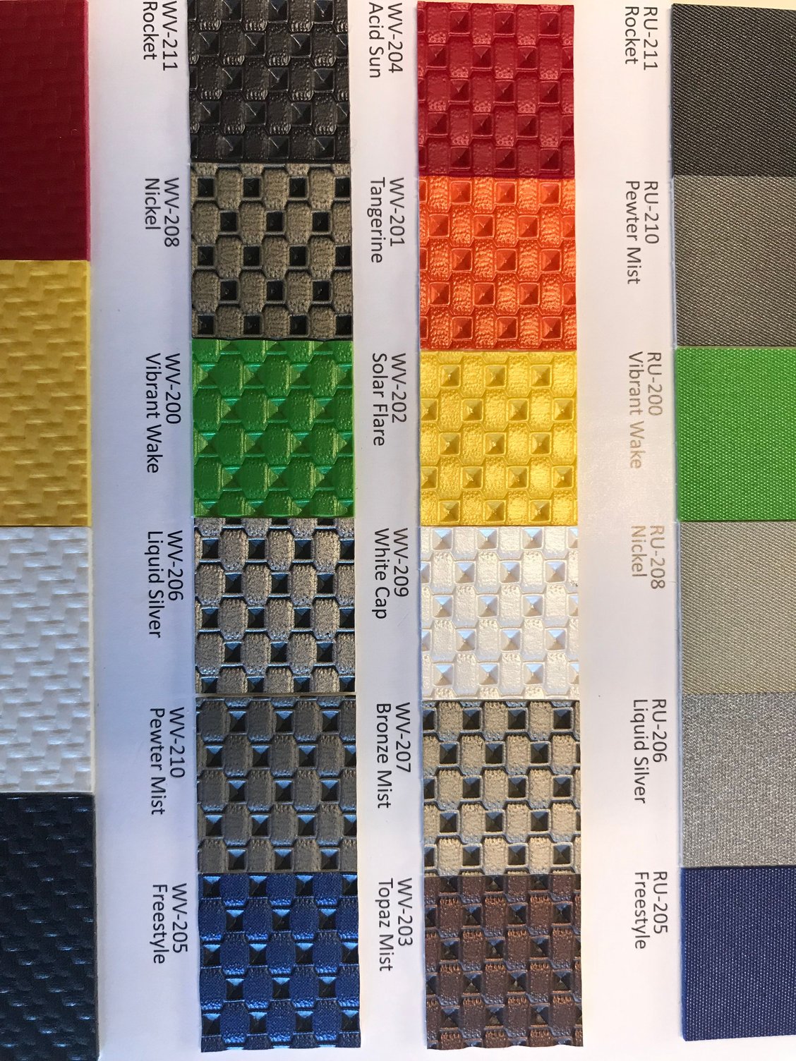 hard to explain but some pics below on what he is doing for me. I am using The Aruba as a main seat color with seat panel inserts of a bronze mist houndstooth/checkerboard pattern with cream piping. The insert is a pattern fir vinyl boat upholstery and it is really nicely textured just the way it looks. I didn’t want cloth inserts as I was concerned they would get too dirty.