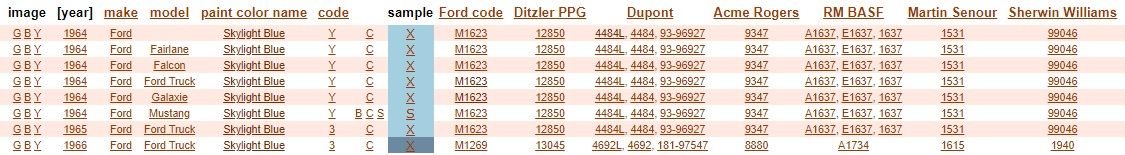 Just an FYI, I used AutomotiveTouchup for obtaining a 64 skylight blue, and the color was horrible, several shades off the stock color. Maybe I got a fluke, but thought I'd throw that out there.