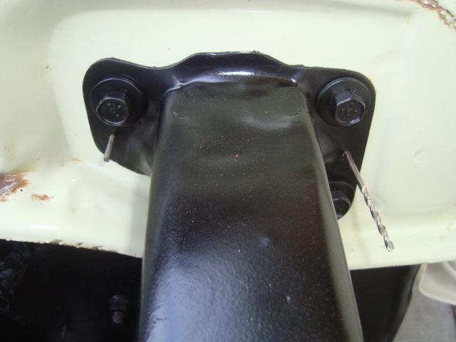 For example, this is the cowl to inner fender bracket and it is adjustable vertically and horizontally. Therefore two holes are required. The same applies to the hood hinges. Insert the drill bits to index the part and bolt it down... it isEXACTLYwhere it was before removal.