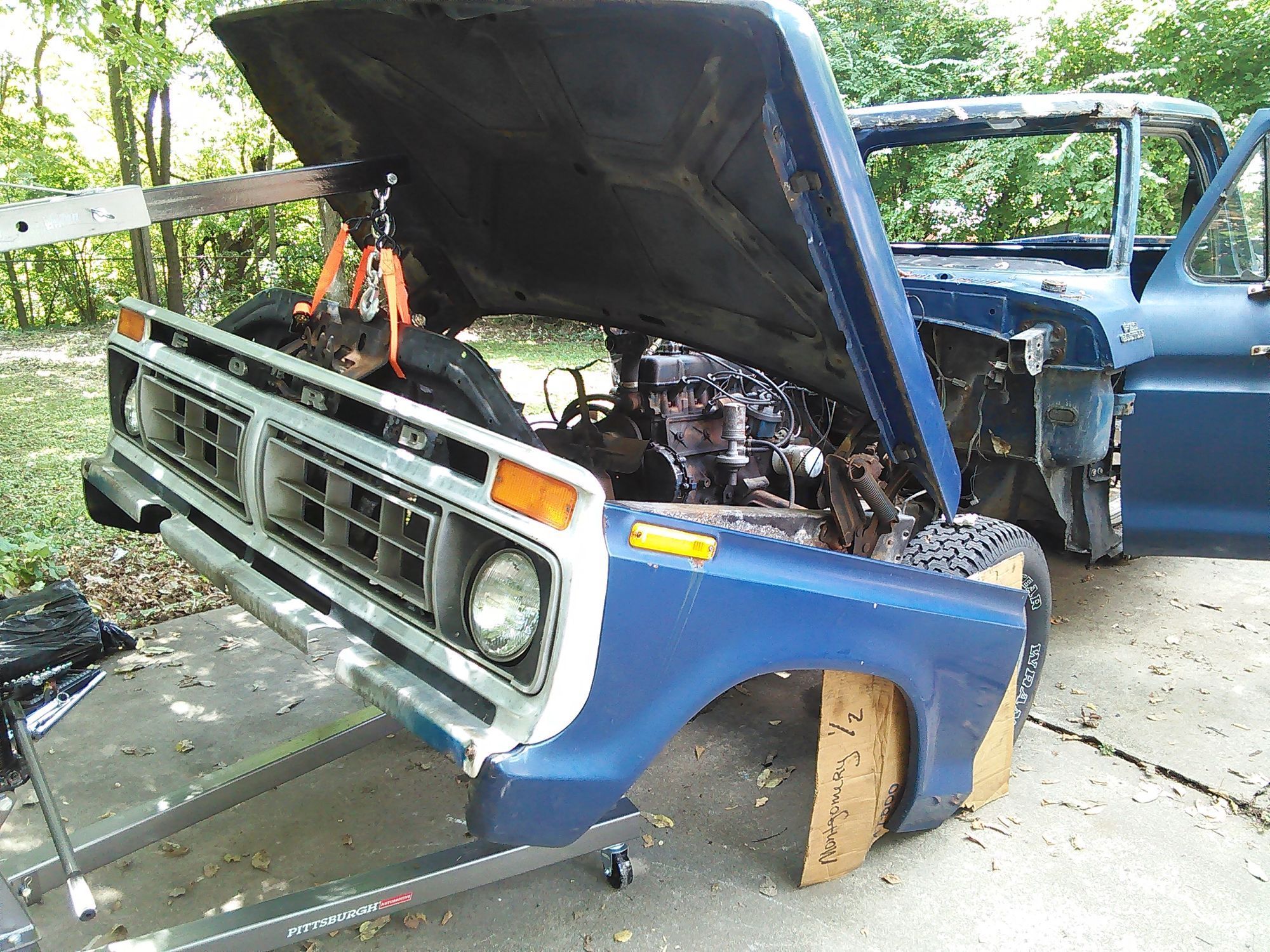 And if you are working alone. I'd remove the hood from the front clip, but 1st shapie mark the hood position BEFORE you remove any bolts. Same for the front clip where the inner fenderwell is attached to the fire wall with the 3 bolts per side. Or do the drill bit trick. Also remember to take pics, tang and bag bolts.
