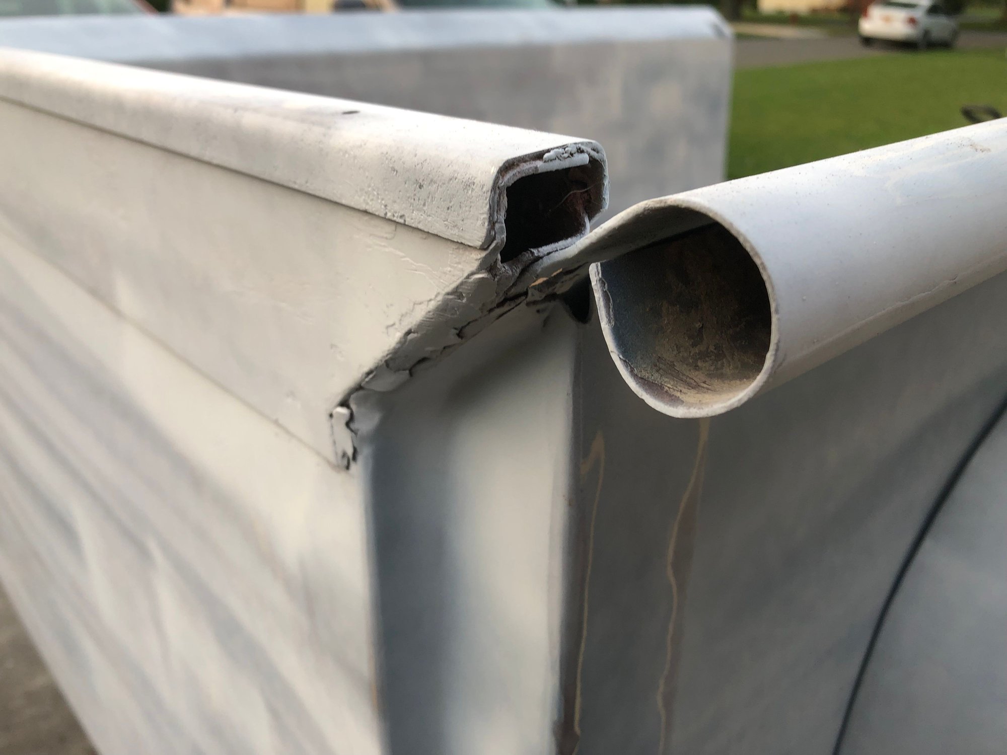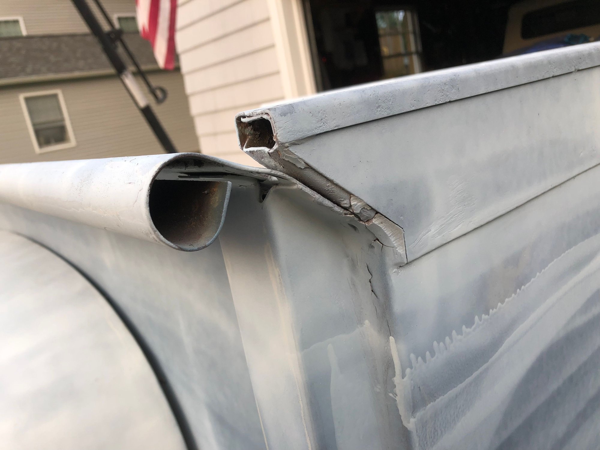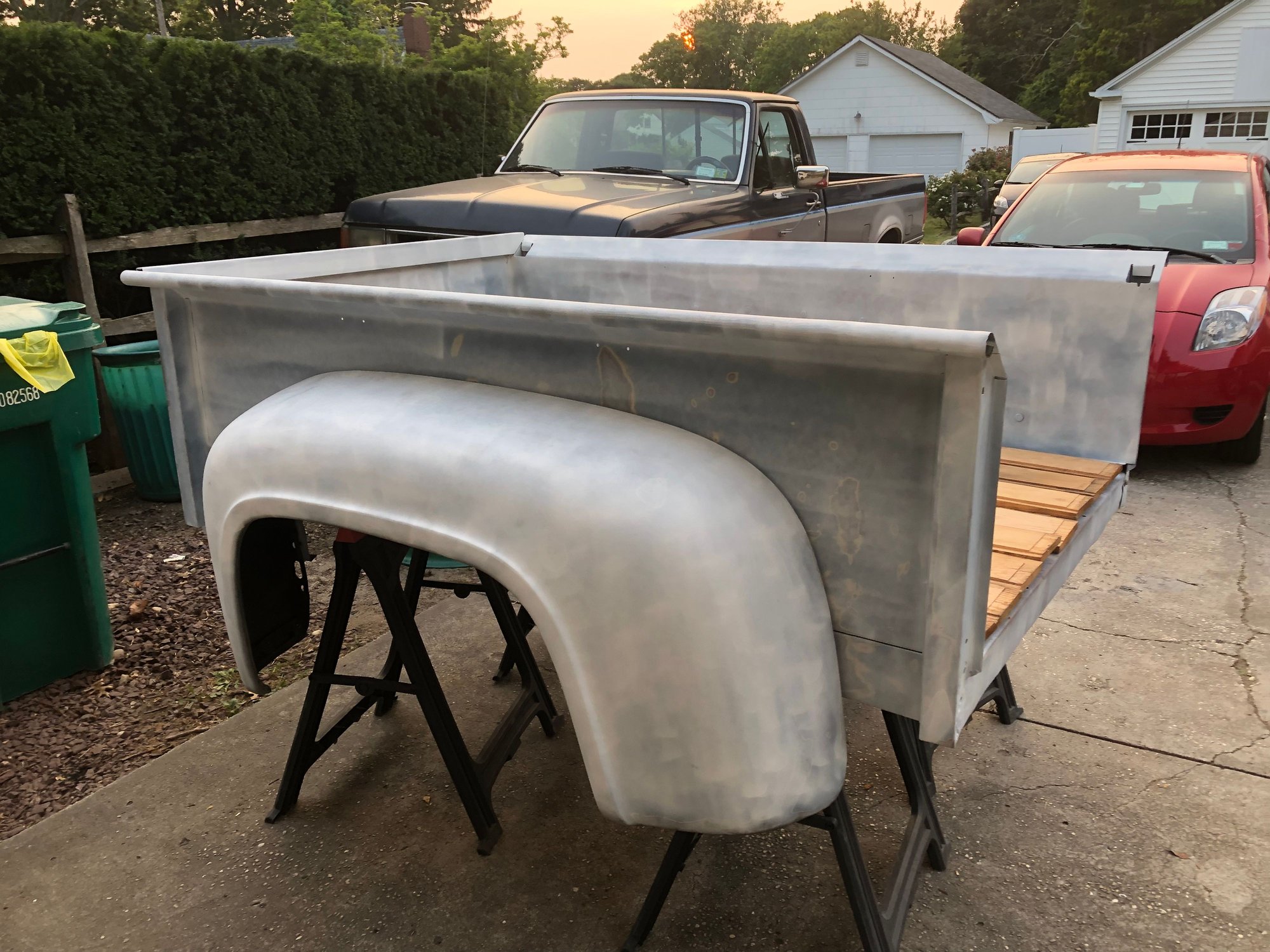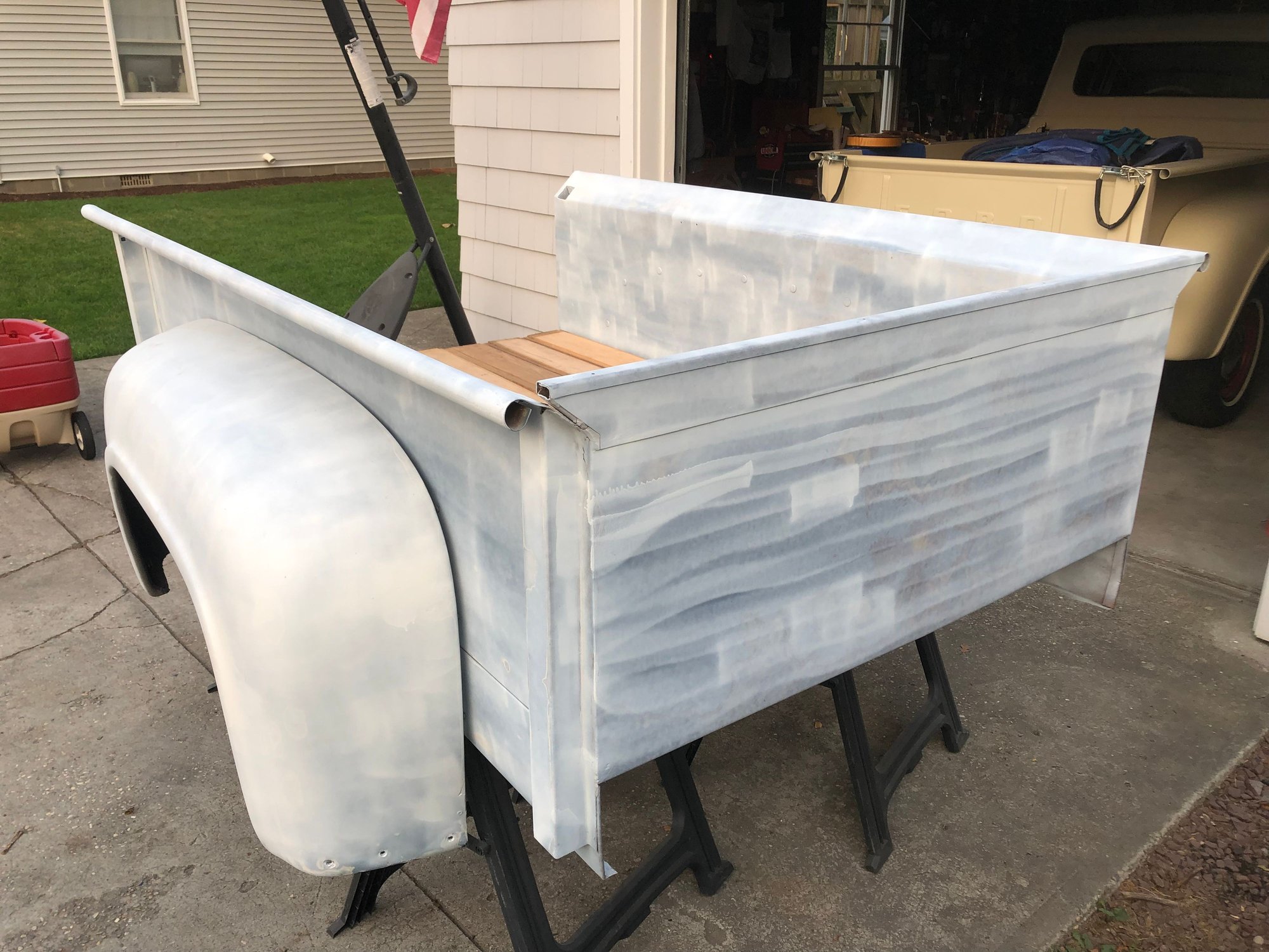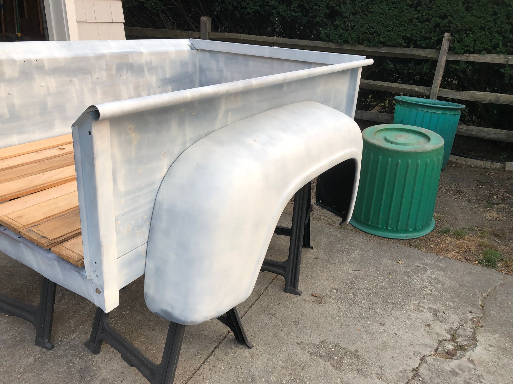 I’m in the process of restoring a 53 flareside bed. I’m hoping to swap this bed with what I have now which is a shortbed flareside from the late 70's (1976 from serial number C20,001 - 1977/79). I really want the slanted rails rather than the flat rails that are on my truck currently. I could use any advice from anyone who has done this before. I already know I’ll have an issue, because the PO of my truck welded metal to the end of the frame's side and extended it 3 inches to fit this bed on my 1960 F100. Bed with wood laid in Passenger Side Driver Side Cab side Problem corner 1 Problem corner 2