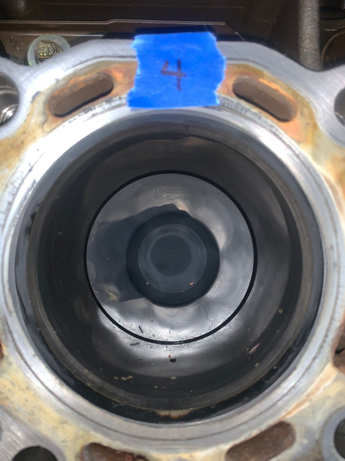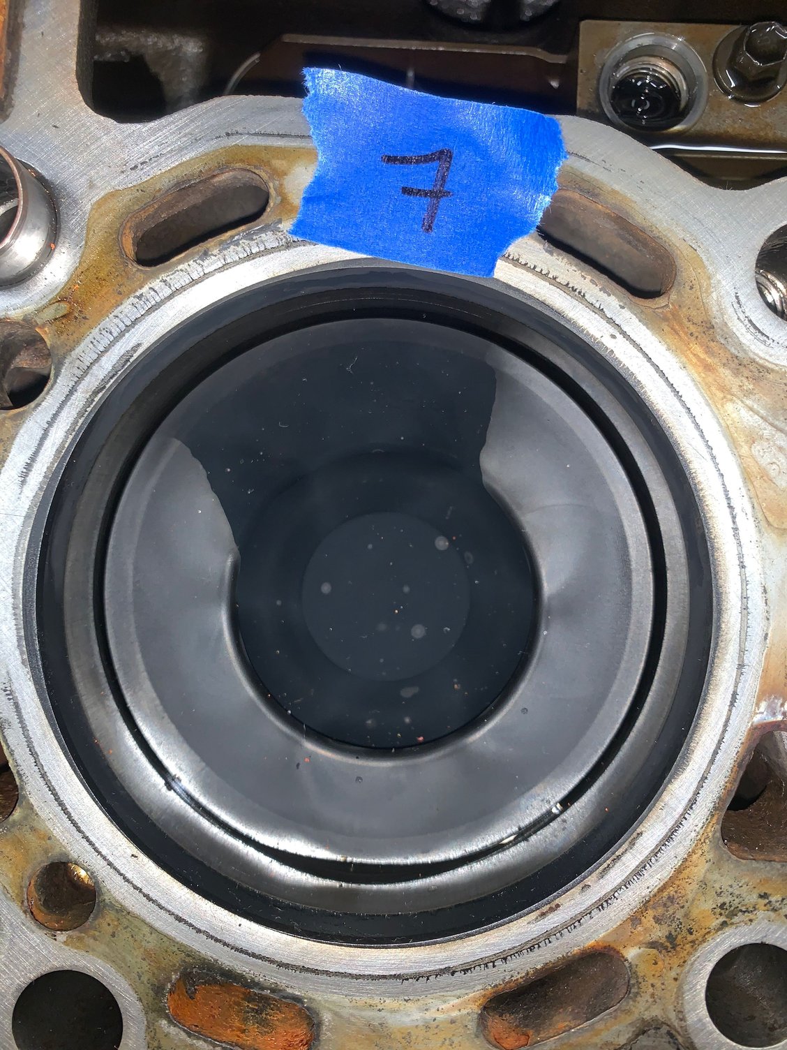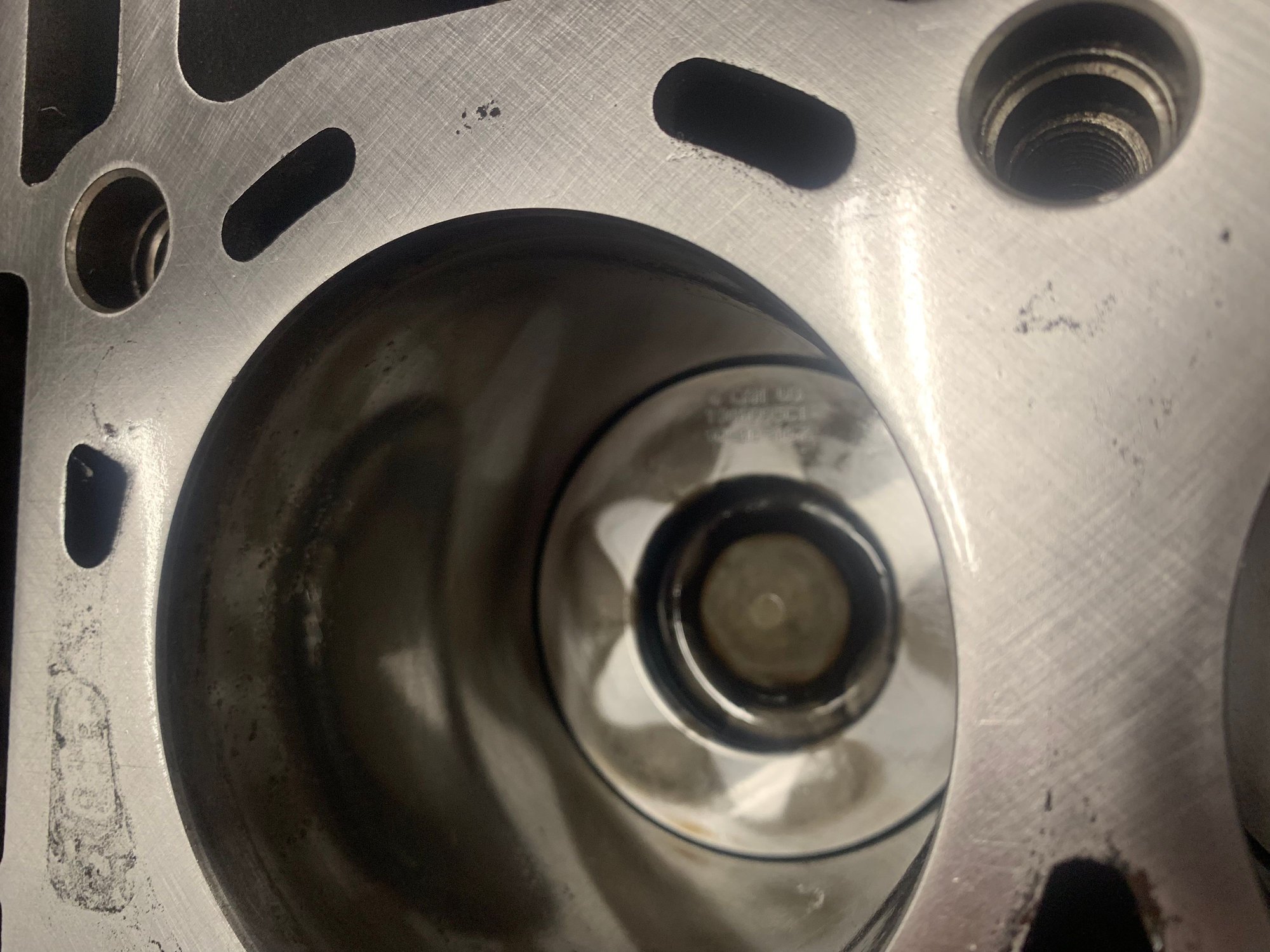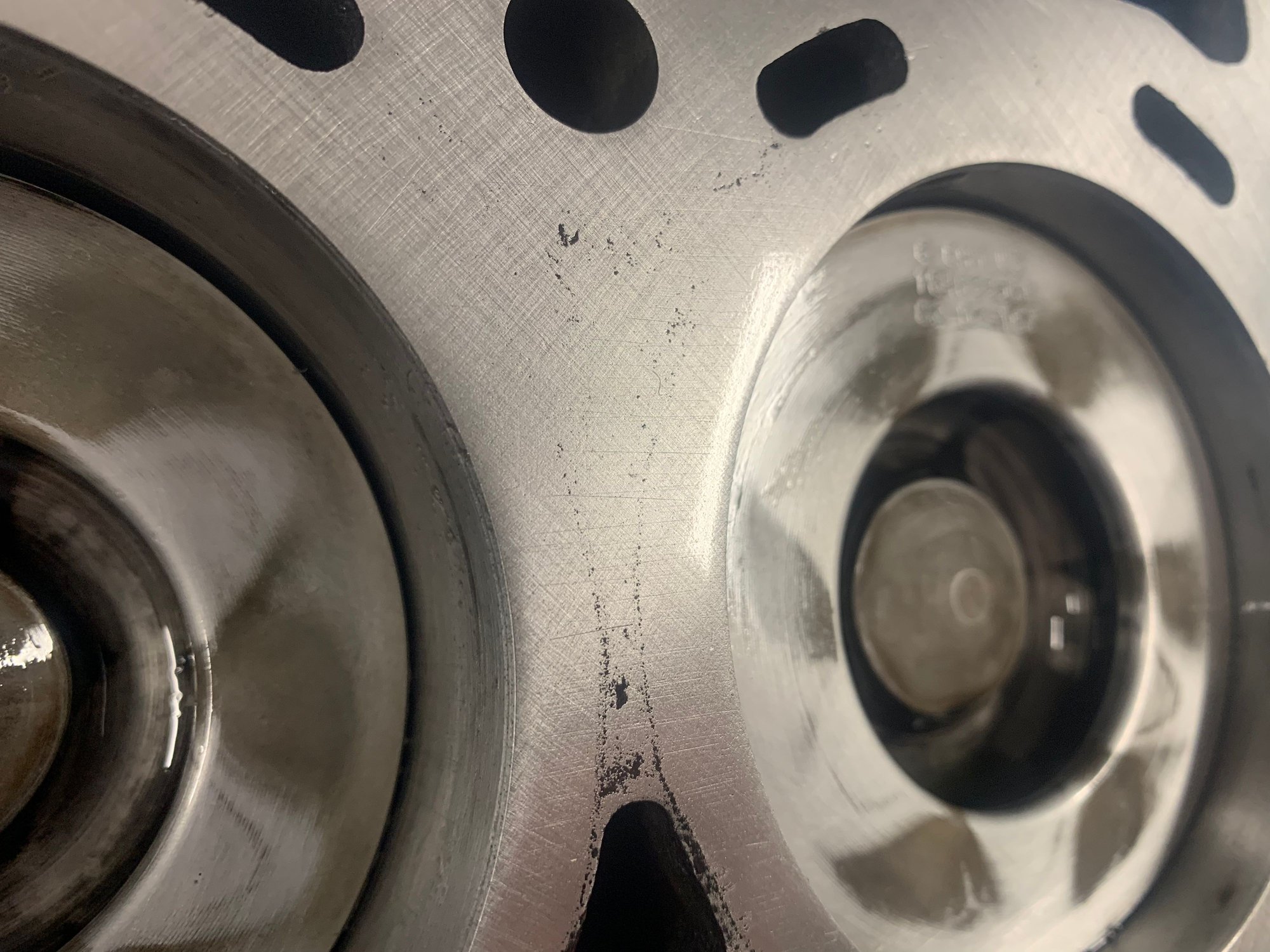 7 hours of hand lapping per side got within .001” tolerance in all areas checking with machinists straightedge and feeler gauge Pretty, notice crosshatching finish strokes Shiny Clean After 5200 miles sealed up nicely, coolant pressure never over 8psi