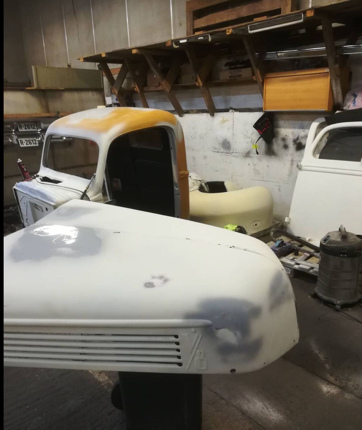 Happy Day, got my paint. Acrylpaint yosemite green.... Im not a painter... so a little bit testing😁 sprayed the Doors, hood, running boards and some other smallparts... Beautiful green colour... Will go for the fenders before the whole cab i think😁👍🇧🇻🇺🇲