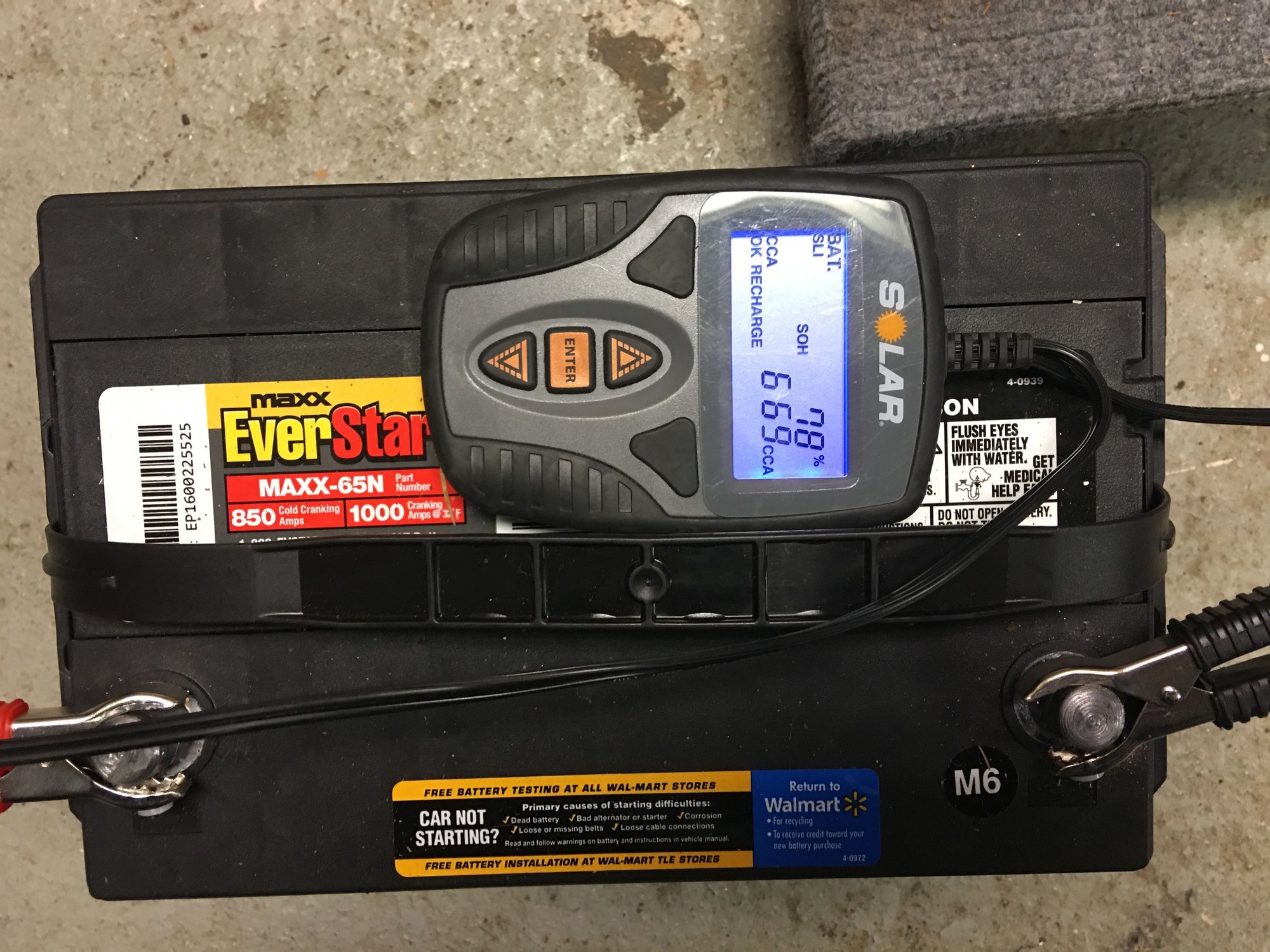 It's the same battery I use in the F-350, Walmart Everstart Maxx 850, $94. So before I get ready to do the Pro-rated swap, I try to salvage the battery for a little longer. The F-350 batteries have been in storage with only a few months of service, but every 6 months I put them on recharge, the last time July of this year, and it's time for them too.