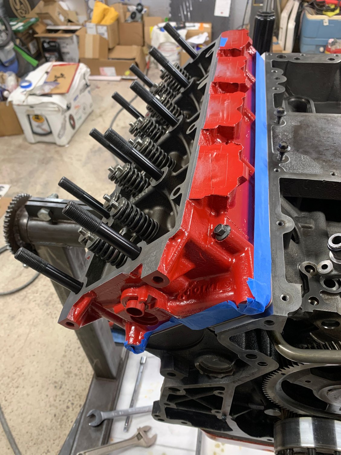 I was inspecting oil galleys in the lifter bores and saw something sticking up on the upper inside of one. I got my little magnet and pick and got it off. It was a metal burr. I found 4 more and picked them out with the magnet in the hole then made a tiny vacuum fitting to suck out each galley to make sure nothing fell into the cavity below. Master machinist Jeff said as long as I got them with my magnet and the lifters went in easily I’m good so I rolled on. Everything went in smoothly.
