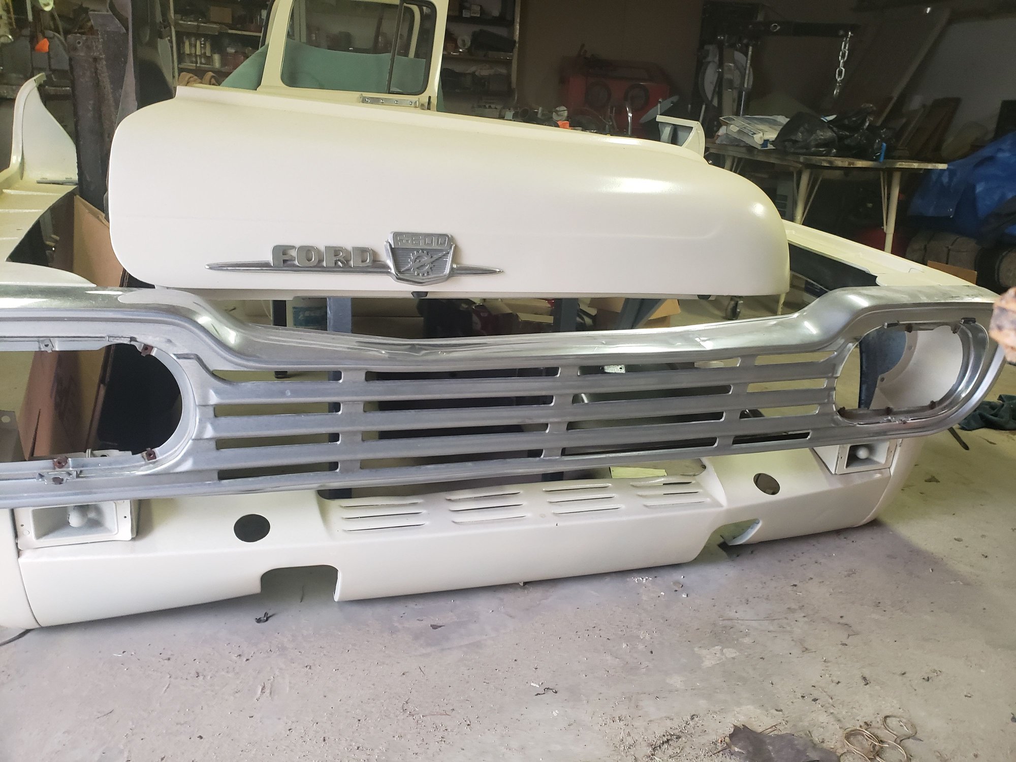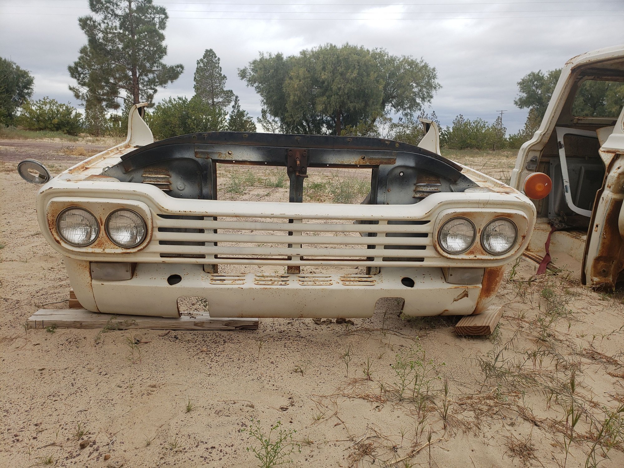 I am wondering which would look better. My donor front clip is a custom cab with chrome grille. My original has a painted grille. I managed to dent top of chrome grille moving it around with my tractor. My initial thought was the dents won't be noticeable with hood on and black brush guard in front. My painted grille is in nice shape but needs stripping and oainting. If I go painted, what color? With chrome headlight surrounds or