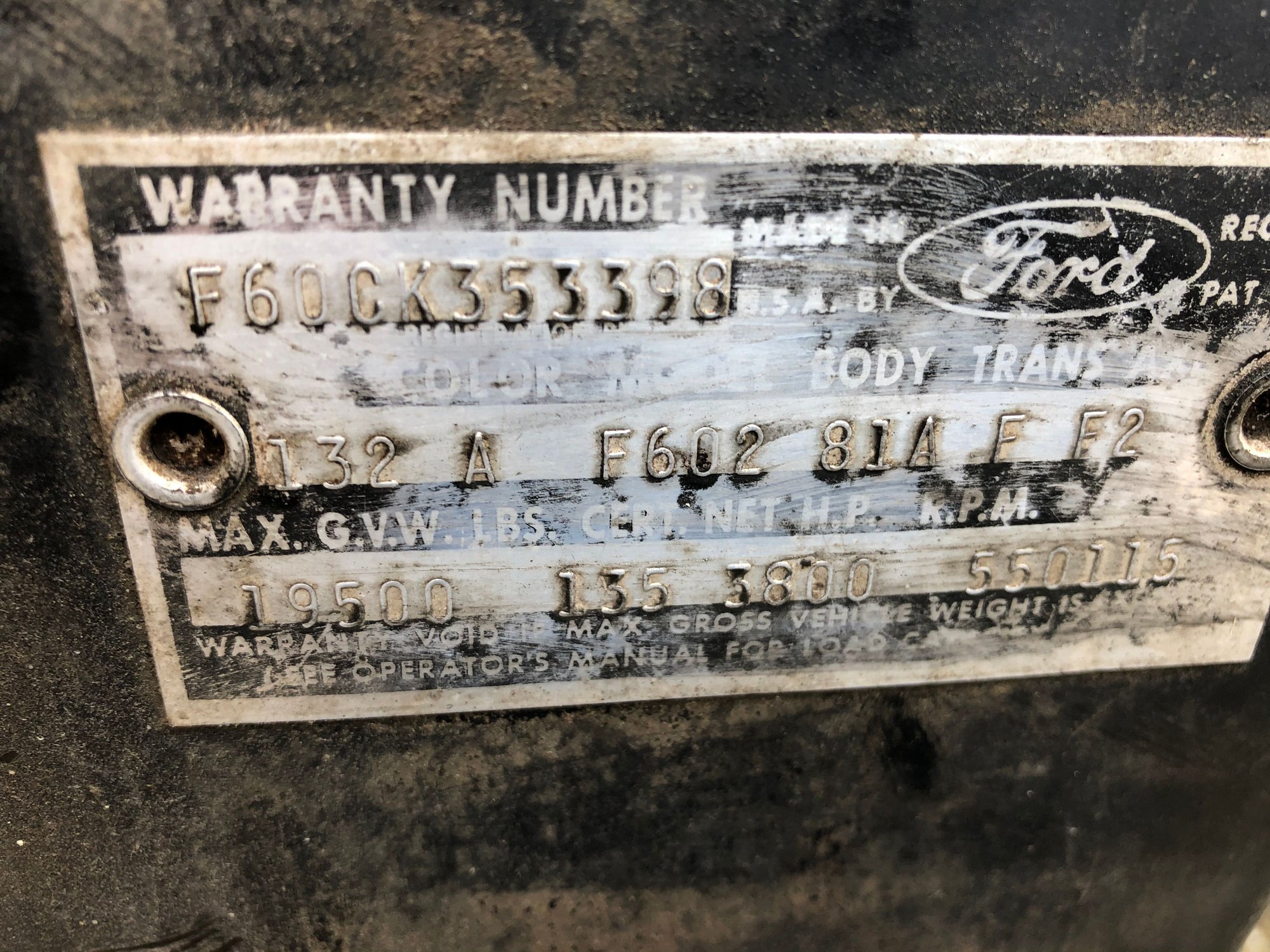 I just bought a 1963 F600 dump truck. The good, it starts, runs, and the PTO/hydraulics work, bed lifts, and clean title. The bad news, head gasket must be blown, the dipstick was a creamy white. I didn't let that stop me. They really shouldn't give me days off in the middle of all this shelter in place. I loved the body style. My addiction started with a 1965 F100, step side, with a 352. I loved that truck but was not in a place where I could restore it as it needed. It was a California truck. I am in the St. Louis area. For now, it's parked on my property. Next I have to find a manual and figure out how to remove the engine so it can be rebuilt. I am a newbie to this. And just for grins, what do you think it's worth? There is significant rust in the floor pans, like I can see daylight on both sides. The dump bed is solid and in good shape. Thanks. Like I wasn't dropping enough on things that go bang.