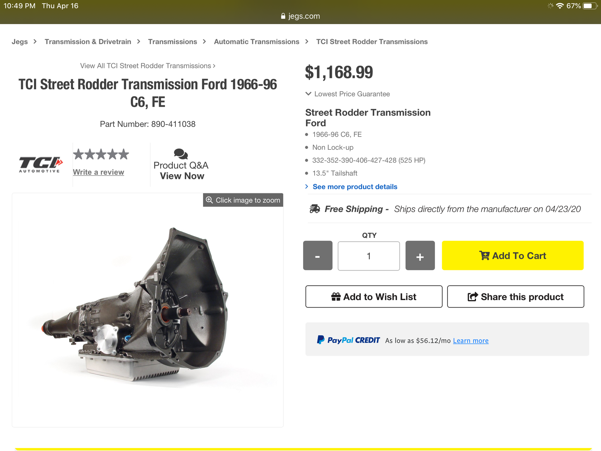 There’s a $50 off coupon and free shipping, so by the time I buy this and a torque converter, it comes out about the same as the rebuild with upgrades option and this is rated for up to 525 hp, Dyno tested, guaranteed, etc. Anybody gone this route?