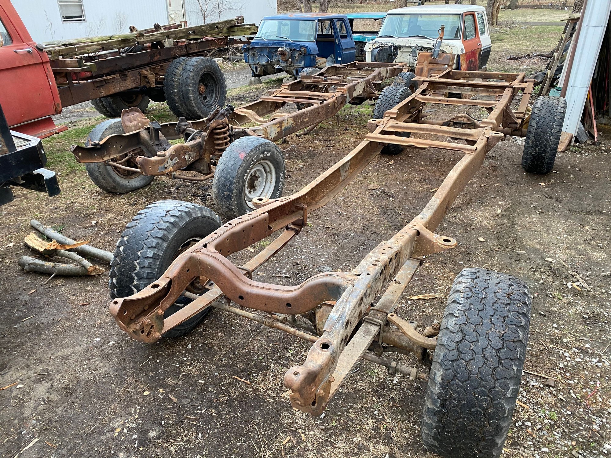 Hey everyone, been a while since I’ve checked in. I’ve acquired more projects. 78 2wd supercab, 78 4wd supercab. 51 Nash 4wd belongs to my 16 yo nephew, pic with my truck was on the way to blaster, pic in garage is what it looks like now. 2wd will be my trailer puller when done. Nash is going to be put up on 4wd chassis to make a mad max style toy. I have 4 scab cabs and getting more. 🤣