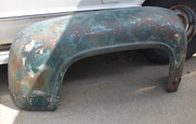 1956 rear driver side fender with spare tire well. Rough condition, a lot of rust. Would require a lot of patching to make nice again. But it does have a nice wheel well opening. $75.00.