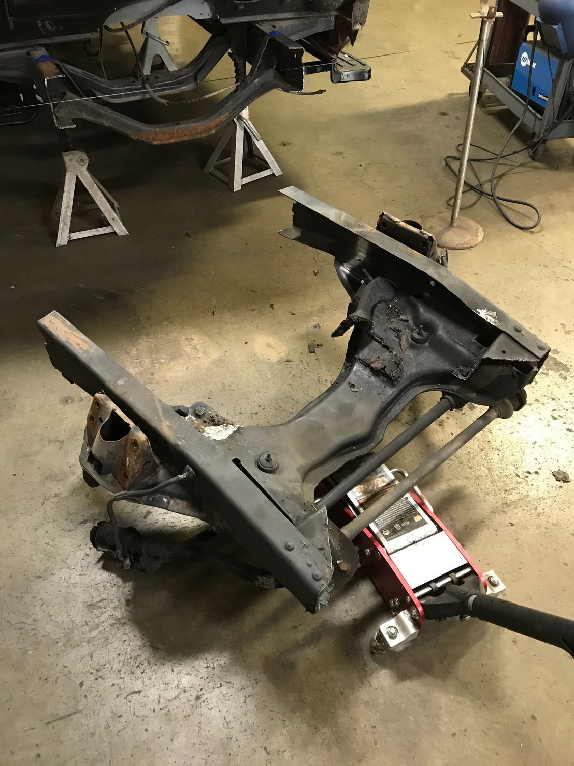 My '56 had a Volare front clip welded to the frame at a slight angle. The result was a lots of weld beads and not much structural consideration. But it took quite a while to cut it all free and still maintain the main chassis at the firewall. Volare, Whoa whoa!
