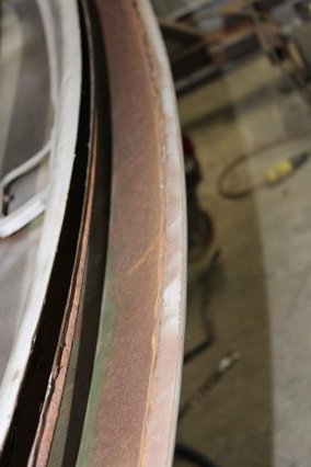 Trimmed the metal flush to the underside of the drip rail , the rust wouldn't allow me to see clearly where the spot welds were so had to do some digging