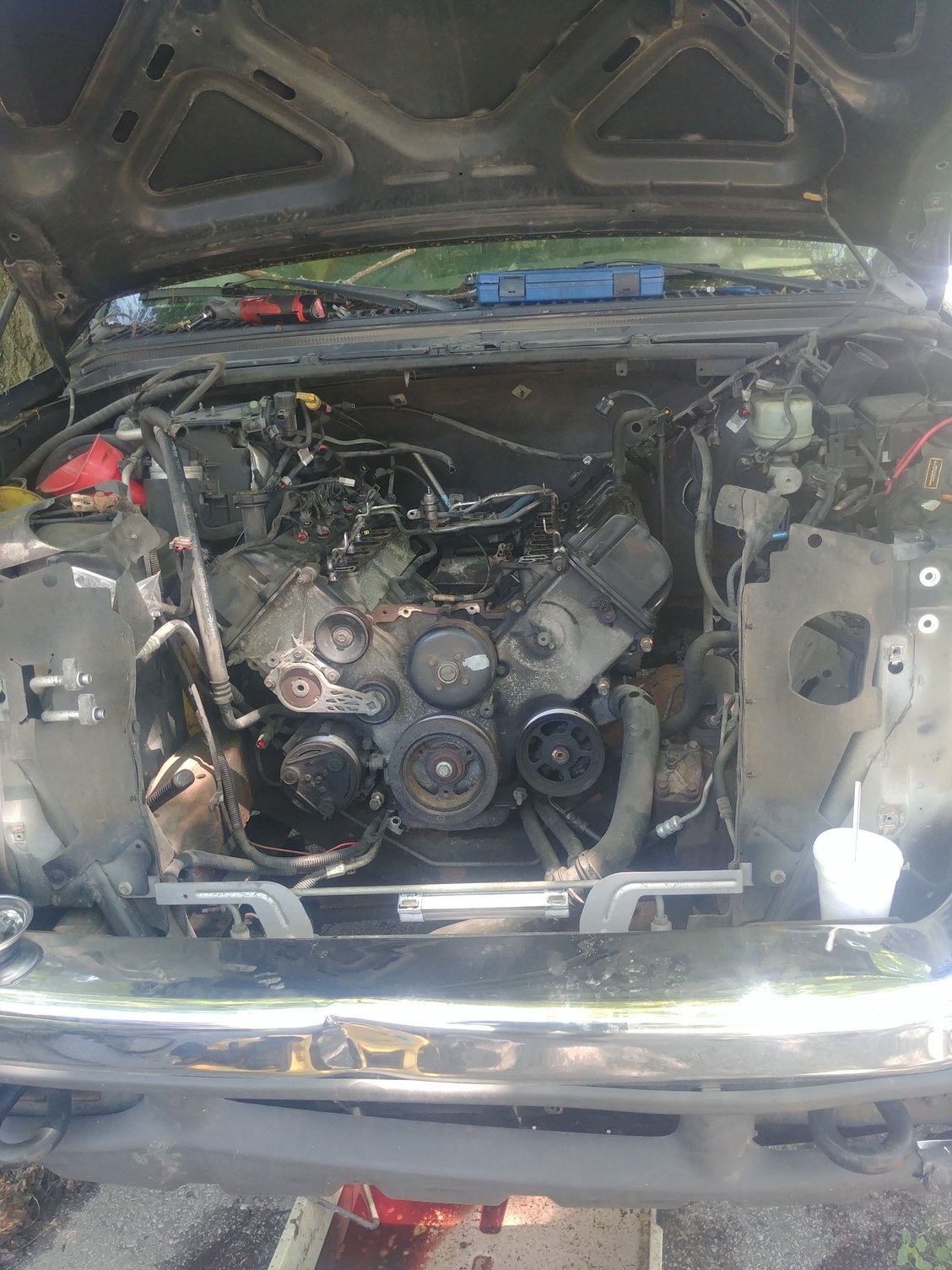 I have a 2000 v10 and the motor is locked up. Ive already took the front of the truck off and pulled the intake off and disconnected just about everything. The new motor has the intake on it... Do I need to remove it to install the engine?