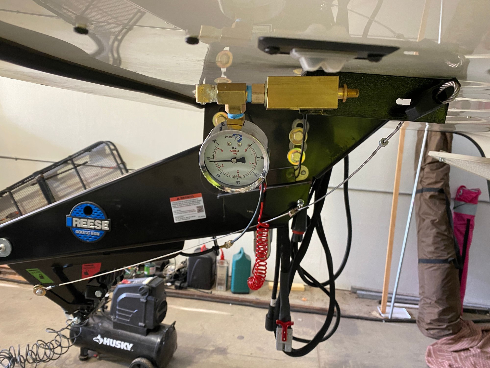 Can you elaborate on the pressure gauge, please? I just bought a Goosebox (20K), but haven't installed it yet (trailer is in the shop). I think the gauge sounds like a great idea. Details on what gauge and how you mounted it would be much appreciated!