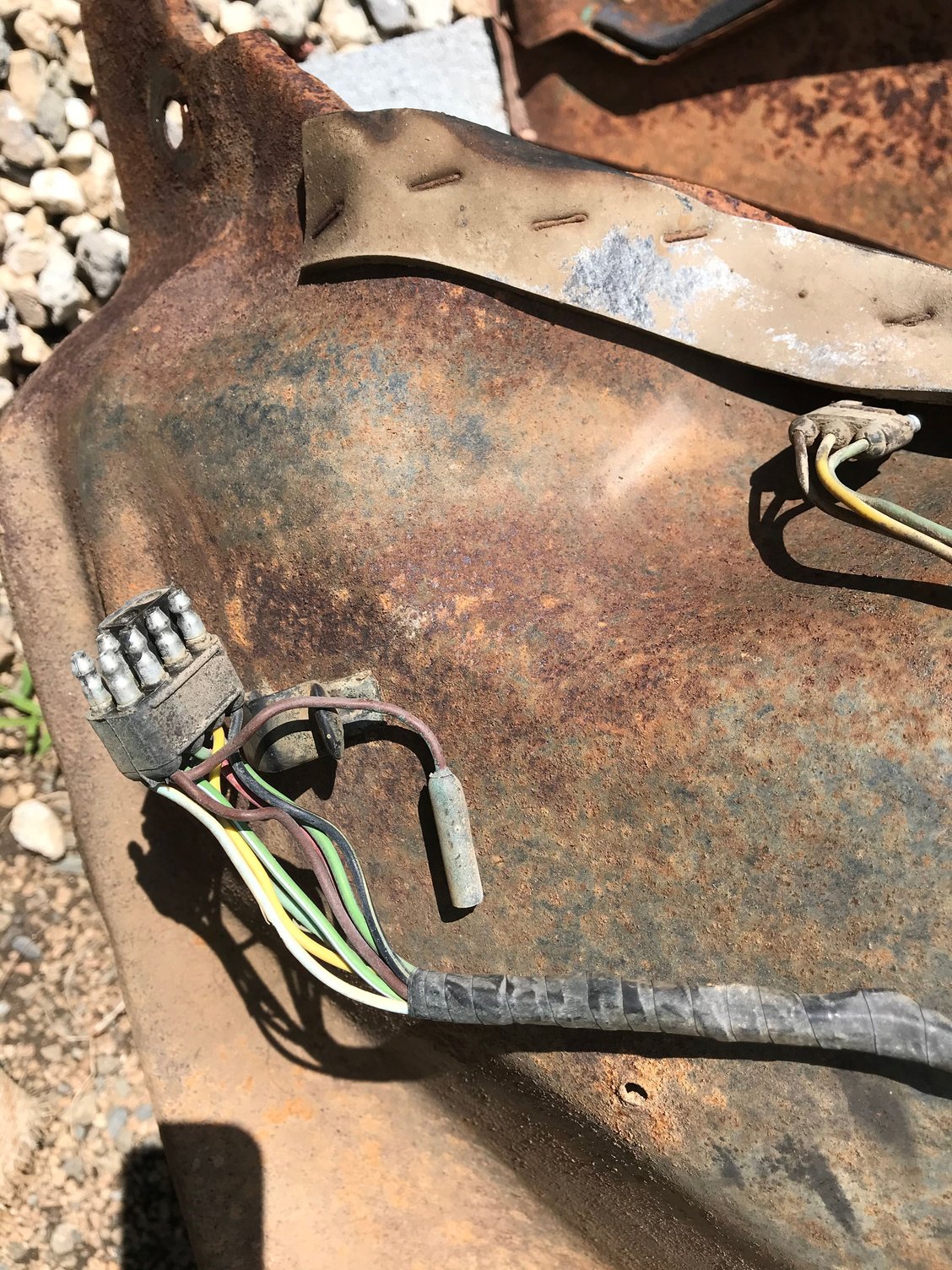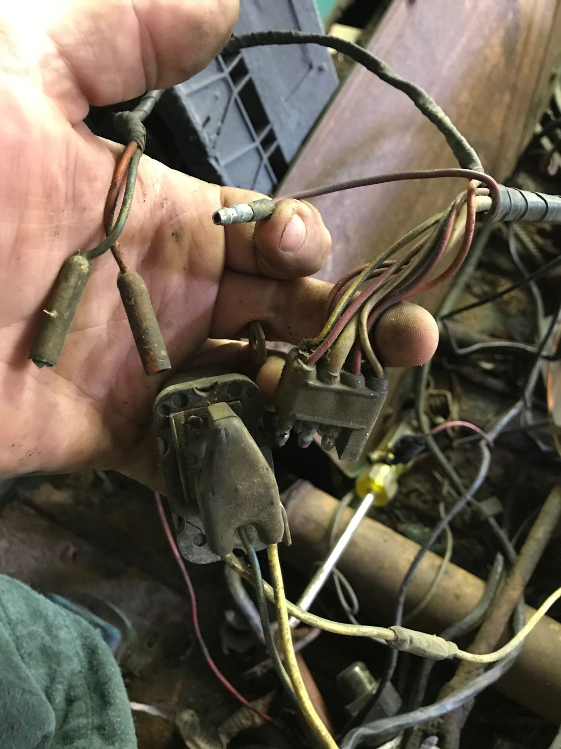I swapped my steering column for the one from the donor custom cab. Mine was missing the wire coming out the bottm of column. Is that a ground? I have a bundle of wires going to the taillights with an extra white wire with bullet connector. Also the steering column wires are not same color. 1959 ford manual not very clear to me. Solved steering column wire issue. Found turn signal switch mounts broken. Moved switch assy and wires from old column over. Hoped to use what was left of custom cab horn button but it doesn't work on my standard steering wheel.