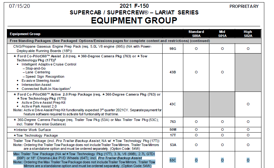 They also for 21 made it so you can't get max tow on anything above XLT 301a. The max tow now requires the HD payload package. The HD payload is restricted to 301a and below. So effectively they took away max tow from all but a few trucks.