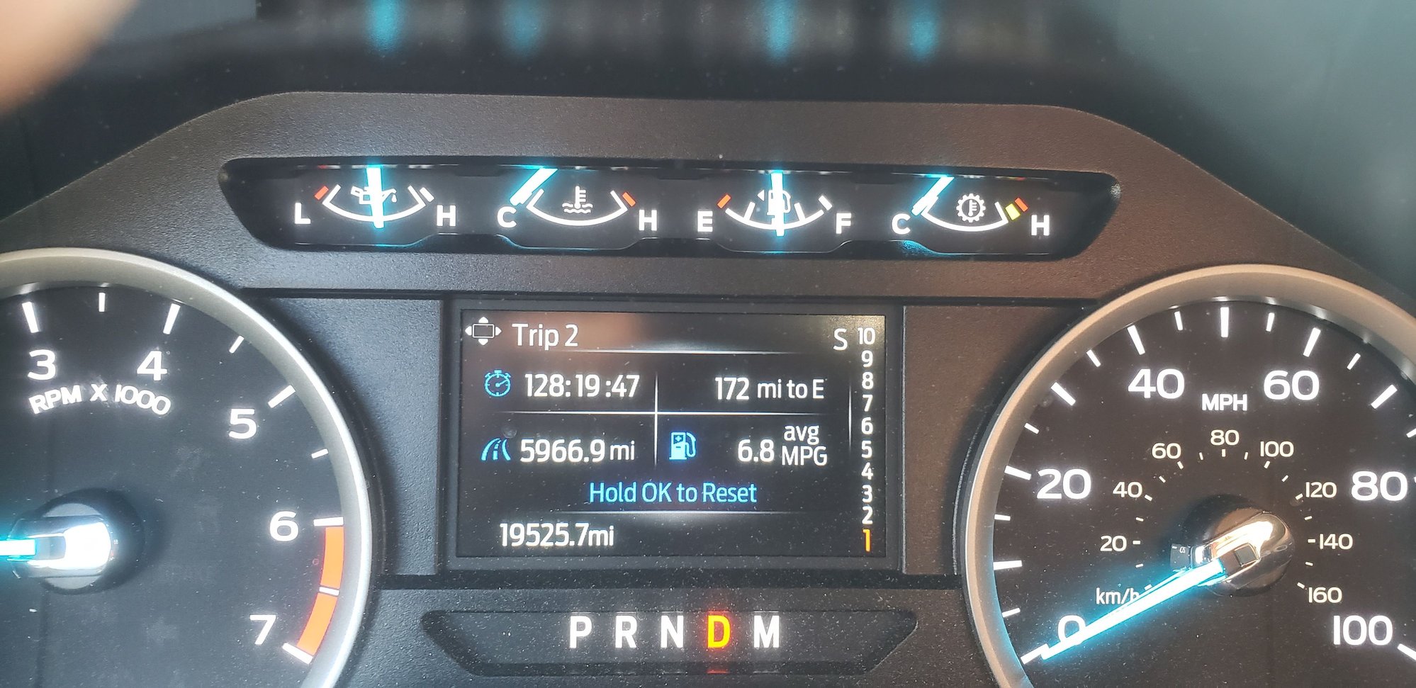 Averaging a solid 8.5 while towing this load multiple times. Not impressed. My '89 351w 4 speed truck averaged 10 pulling the same load and makes similar power, and averages 12 unloaded, which is better than this truck. Using my brother's '94 F350 cab and chassis with a 460, we averaged 10 MPG. But at least the AC works in my '21 I guess.