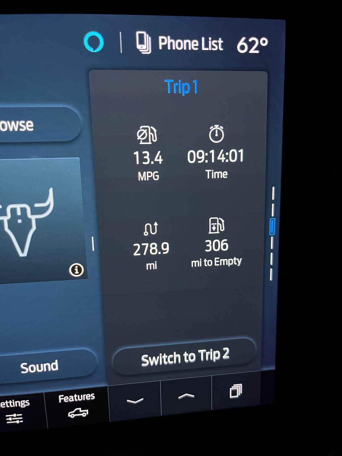13.4mpg so far. No, I don't hand calc. This is a 2-ish hour highway trip in the mountains of SWVA @ 72-75mph, and about two weeks of daily driving to work and back. 9 miles each way on the outskirts of the city. 25-45mph speed limits.