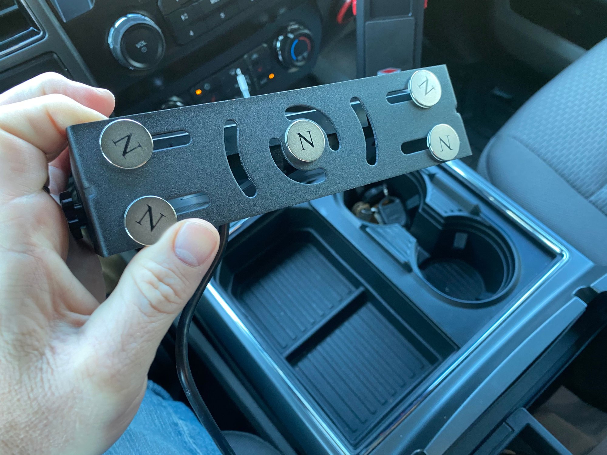 When I am towing, I can place the screen on the bracket and the magnets hold it perfectly in place. When I am not towing, I can slide it off and store it in the console.