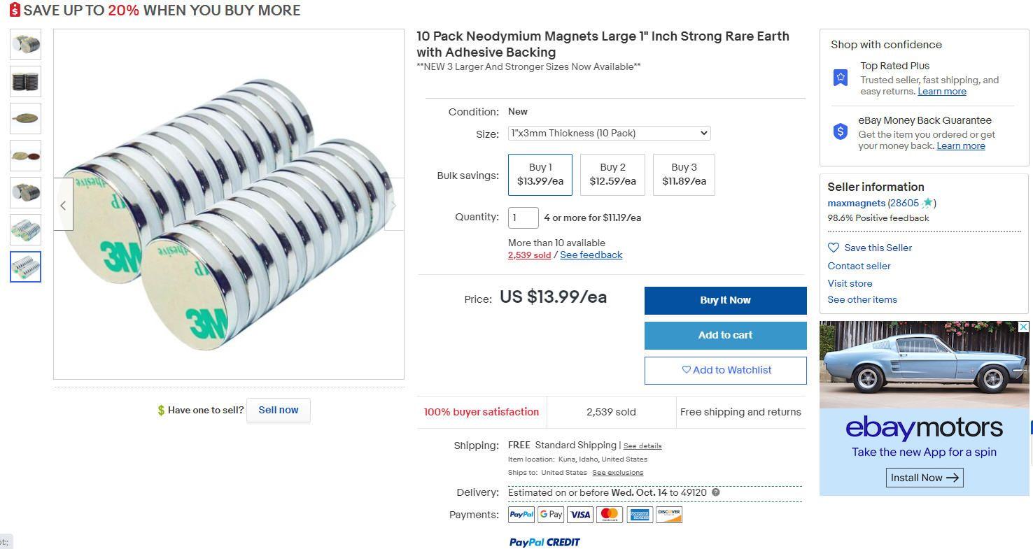 If you have a local Rural King store, that is where I picked up my magnets. Your correct, mine are something in between a quarter and a nickle.