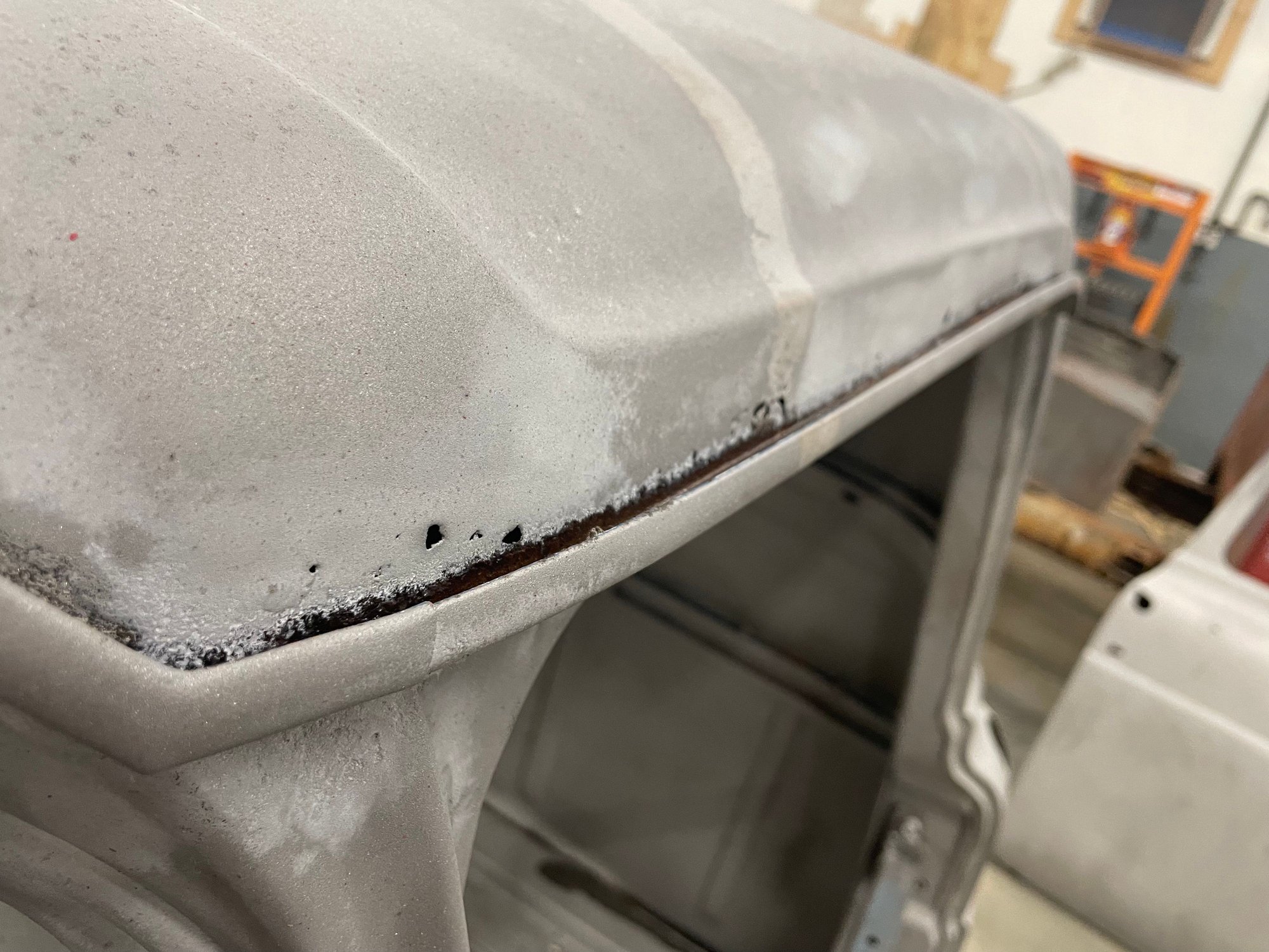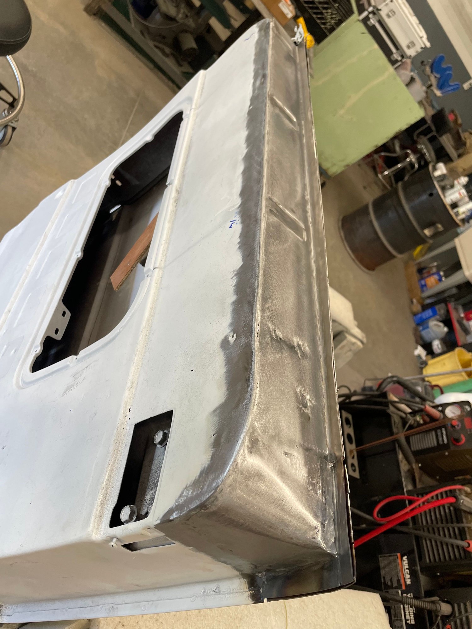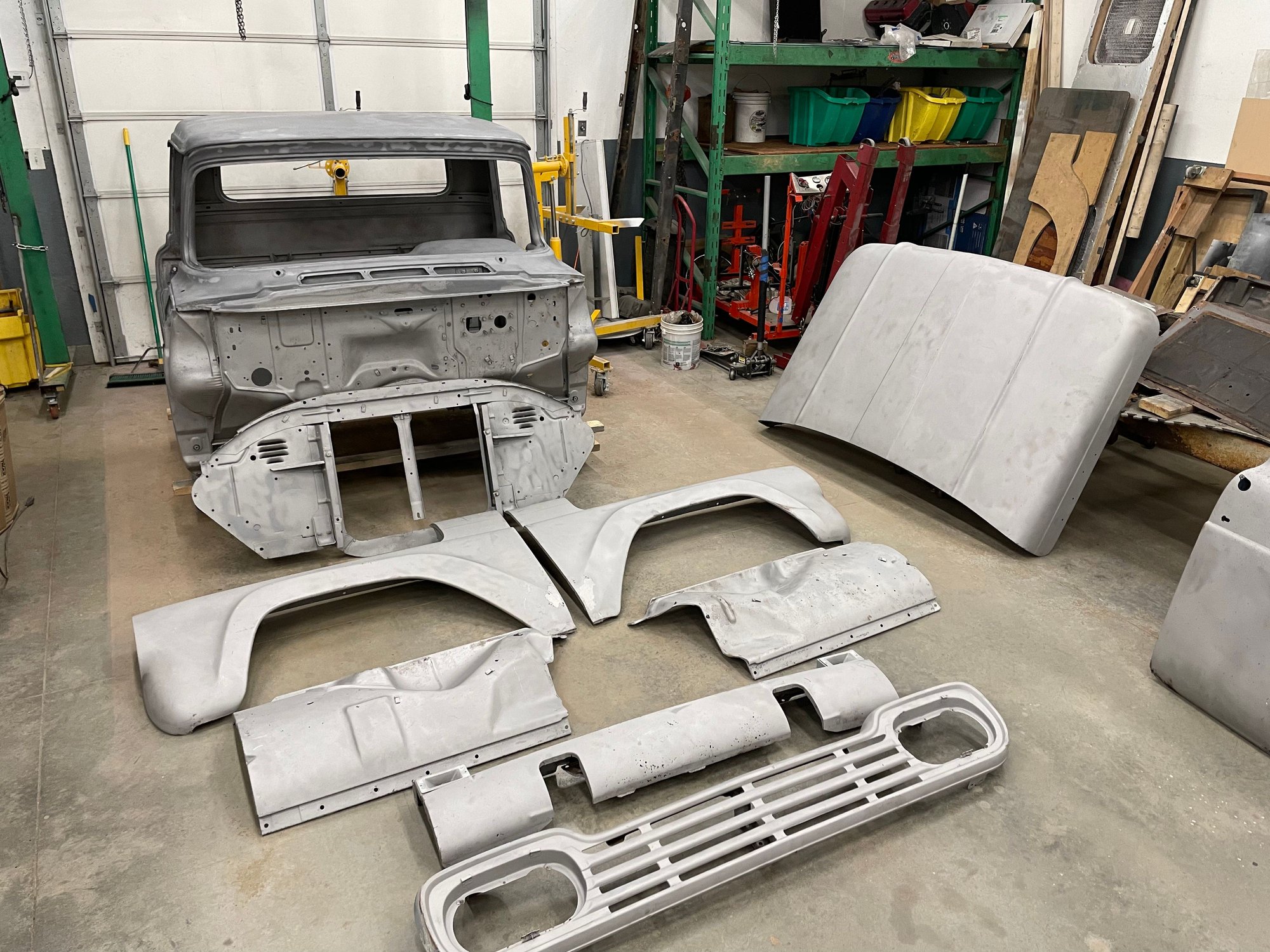 Haven't posted in a while. I had the body blasted after I ran across some sketchy repairs. What I thought was a good truck turned out to be much worse. I will be getting a lot of practice on my metal working skills. Every part needs significant repair. I don't believe in fixing rot with fiberglass. I also am not a fan of lap welds. So handmade patches and butt tig welds for the next few months. Luckily I had a spare hood to scab some pieces off as well as EMS cab corners. Here's some photos so far.