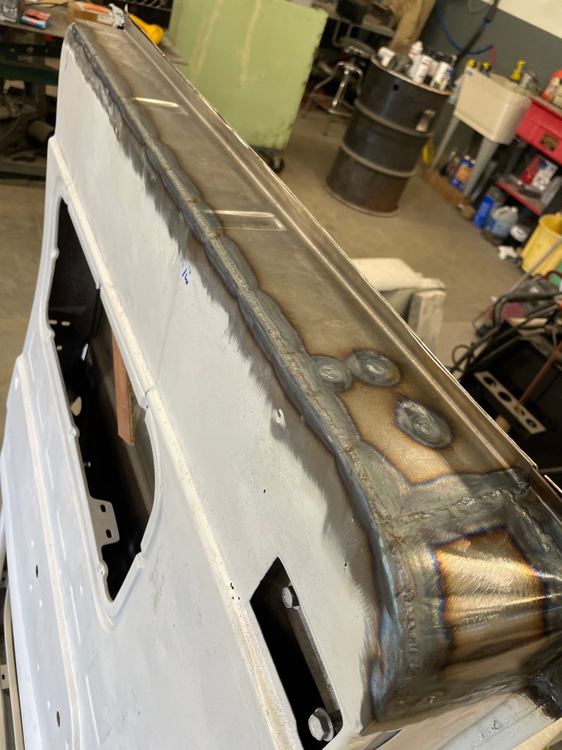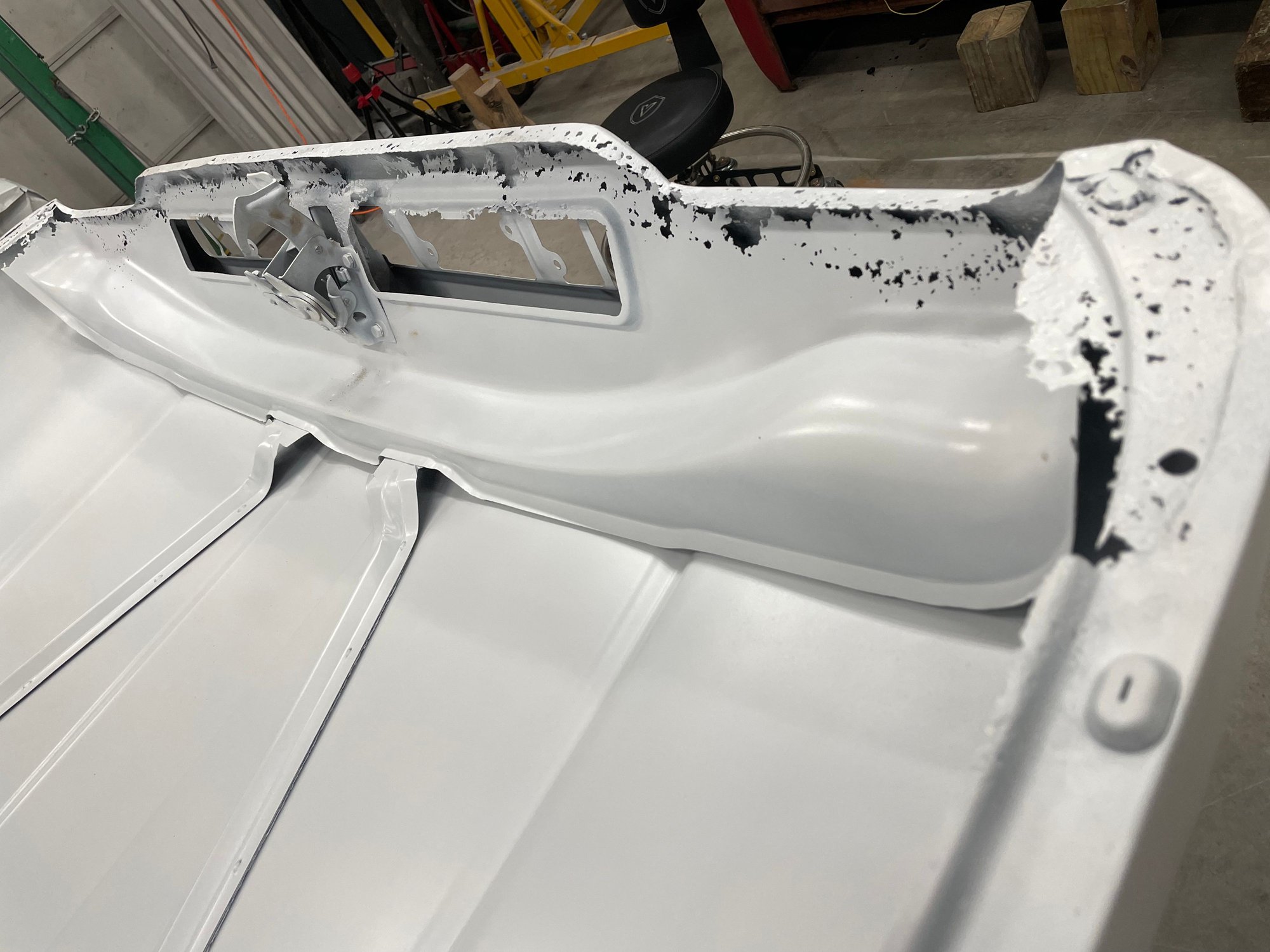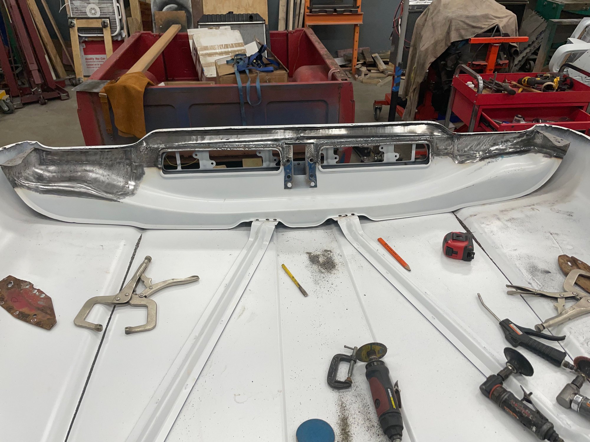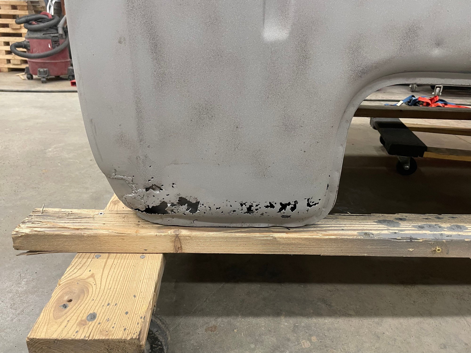 Haven't posted in a while. I had the body blasted after I ran across some sketchy repairs. What I thought was a good truck turned out to be much worse. I will be getting a lot of practice on my metal working skills. Every part needs significant repair. I don't believe in fixing rot with fiberglass. I also am not a fan of lap welds. So handmade patches and butt tig welds for the next few months. Luckily I had a spare hood to scab some pieces off as well as EMS cab corners. Here's some photos so far.