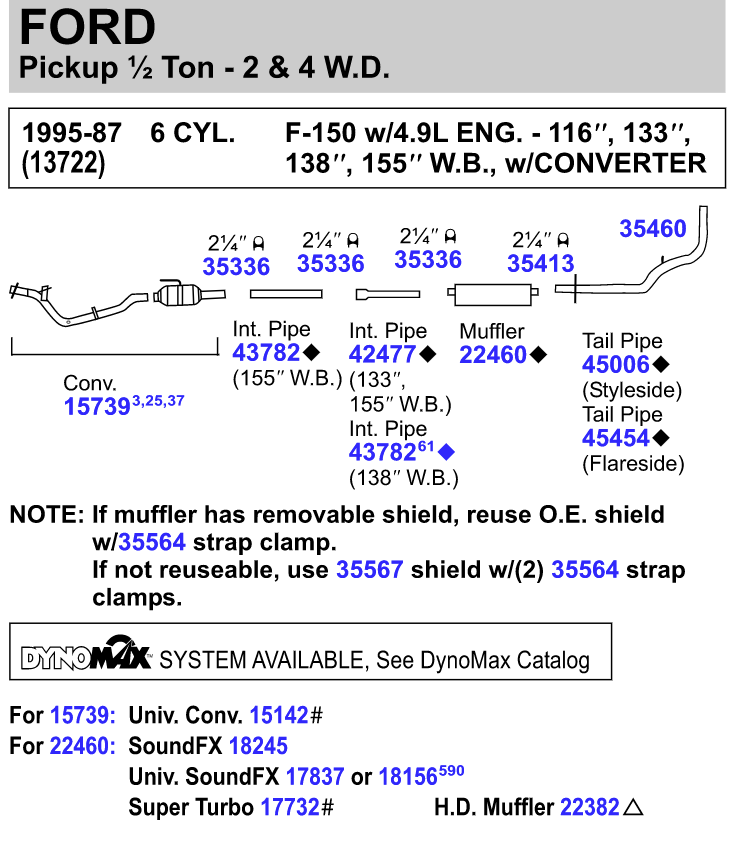 So for my 133", it seems like a 45166, single 42477 extender, 18238 muffler (which I already bought) and a 46326 tail (which I also already bought) might get it out the back. Anyone able to check my calculations or find the application combination for 45166?