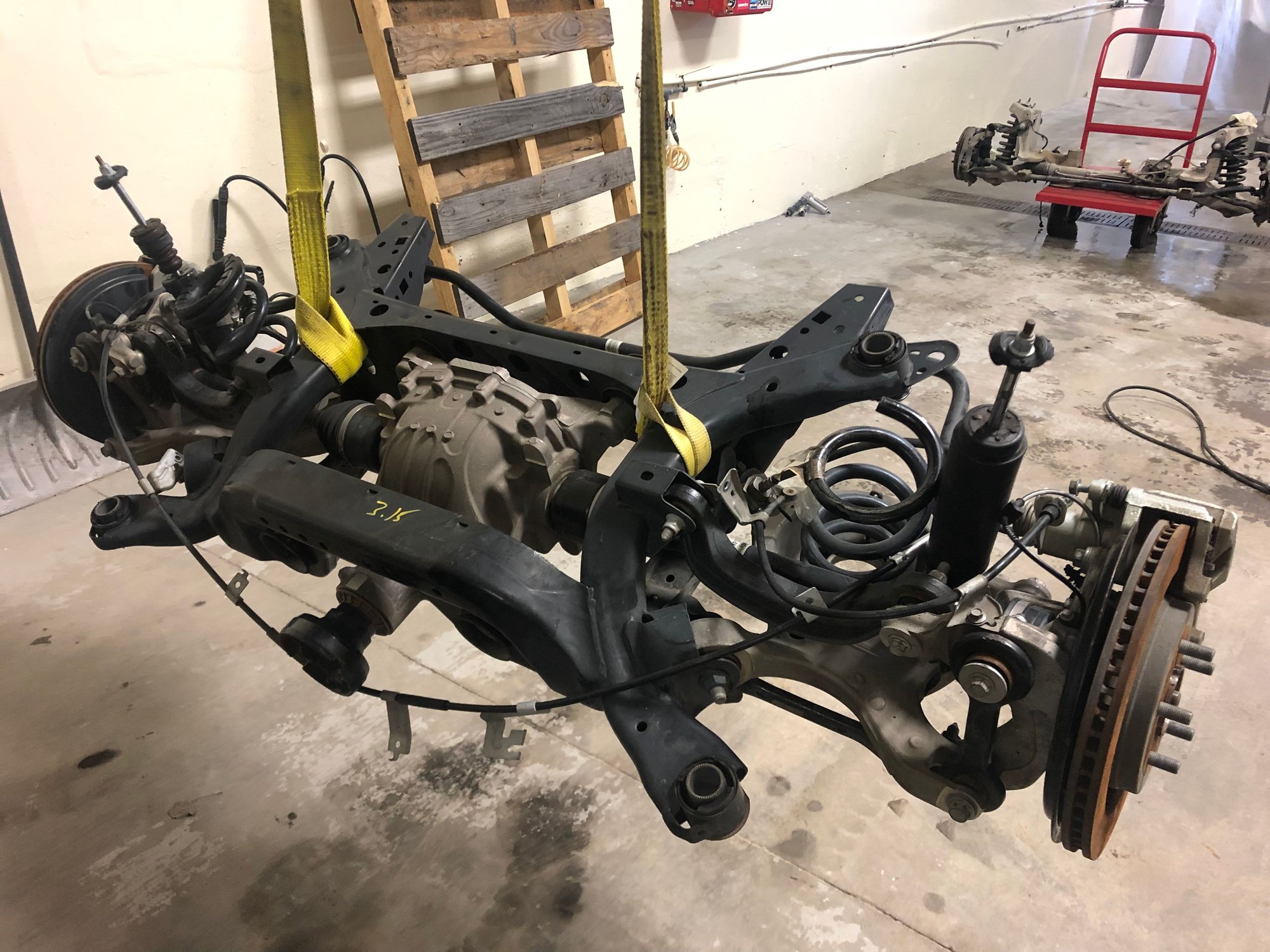 So here’s a glory shot from most of the way through the day. What came off today. Tomorrow I’ll be back at it. Hopefully, I’ll get the cv and irs units in place enough to roll it around. I think some clamps will get me there. If time allows I’ll get the cab off as well- any tips on removing the steering box?