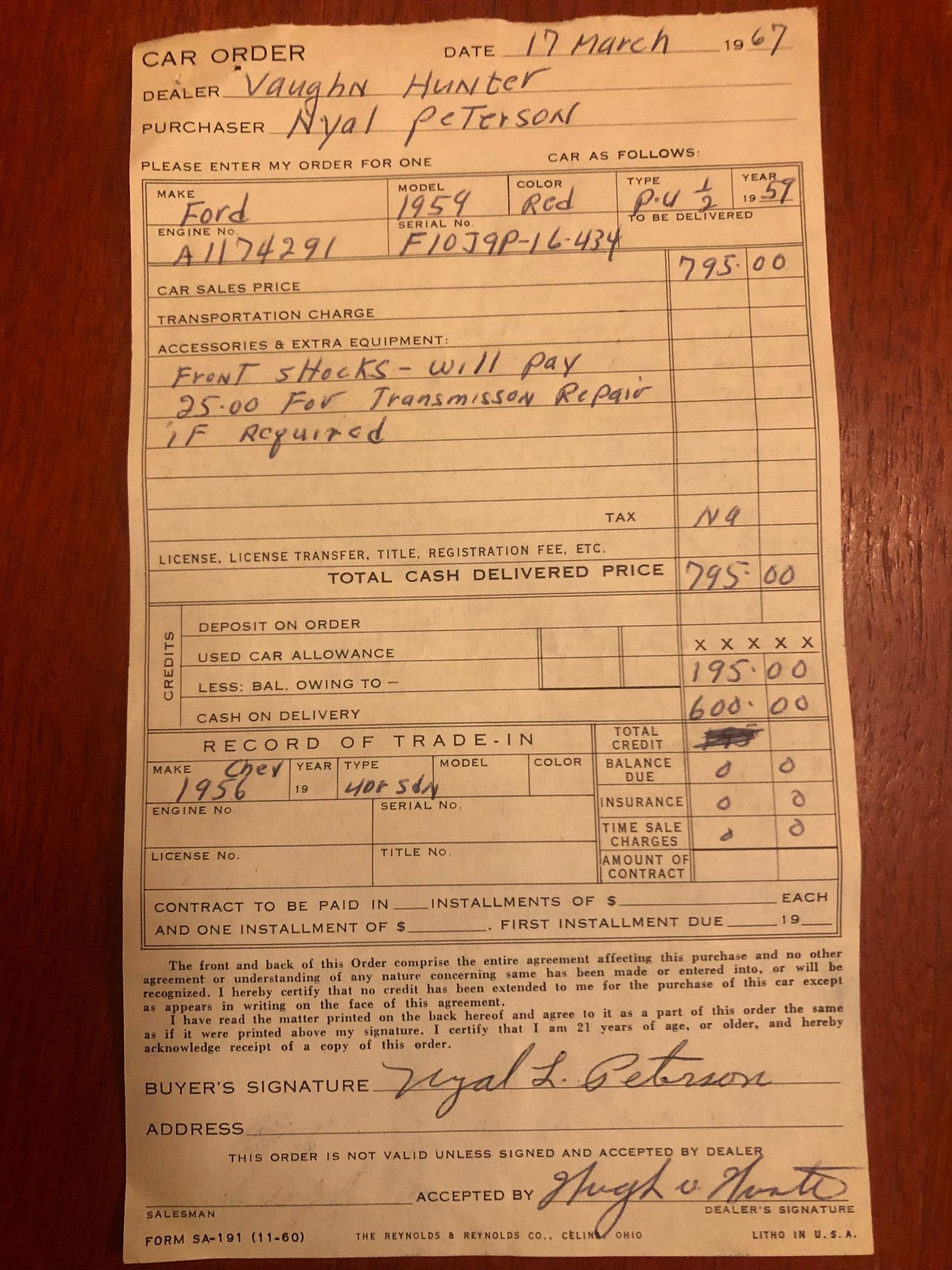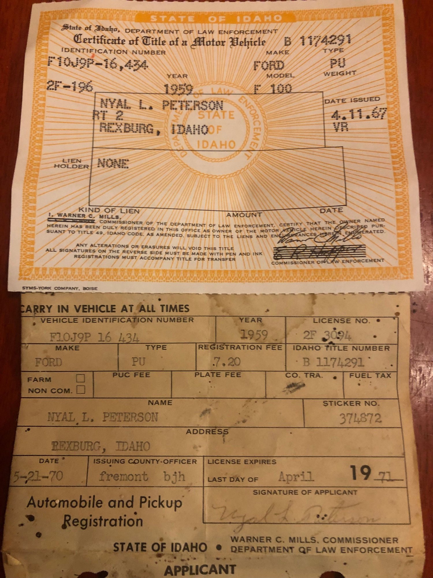 This made me think about the VIN coding. The truck came with a 1967 title, bill of sale & 1971 registration. These are always fun for me to ogle- when they aren’t recent. I guess the vin code is good to know, but I can’t see it going back to stock. It’s simply missing to many pieces.