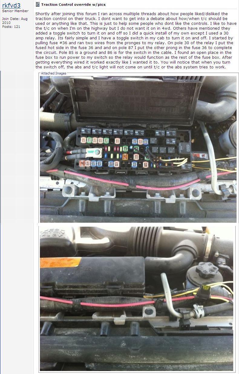 That was a pretty decent read there. I appreciate it. I figured I was missing something when I was searching. I'll have to try the toggle switch idea. I just figured that pulling the fuses disabled everything even including ABS which as I said before was something I wanted to avoid. I drive my truck a lot in my fields and I've noticed that TCS and RSC hindered me when pulling something or trying to get up a hill more than it helped and...of course, who doesn't every so often have to deal with some mud? I remembered last year when I went fishing I had to drive across a riverbed which is under most circumstances easy to traverse as it's mostly gravel until a certain point and I've driven through it hundreds of times with other vehicles without issue but much like any mud, wheel speed and momentum are your friends...but TCS says ''naw, they're your friends, but I'm your ex wife.''