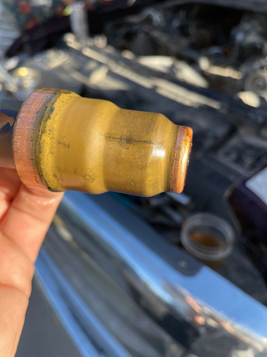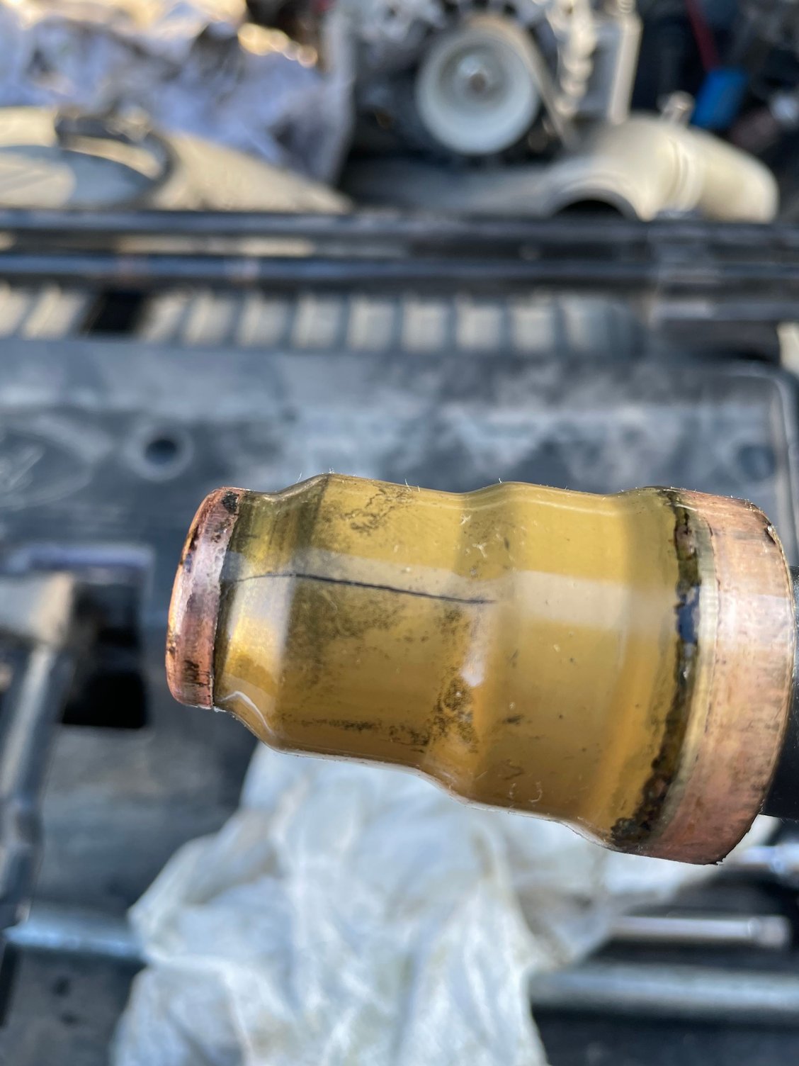 Coolant choice doesn’t seem to have an effect on them otherwise they would be eroded, corroded, oxidized etc. Every failed cup I’ve seen has been cracked with no visible signs of weakness otherwise. All three of mine were cracked and the cracks did not look fresh before they gave up and started leaking. Maybe it’s a mystery.