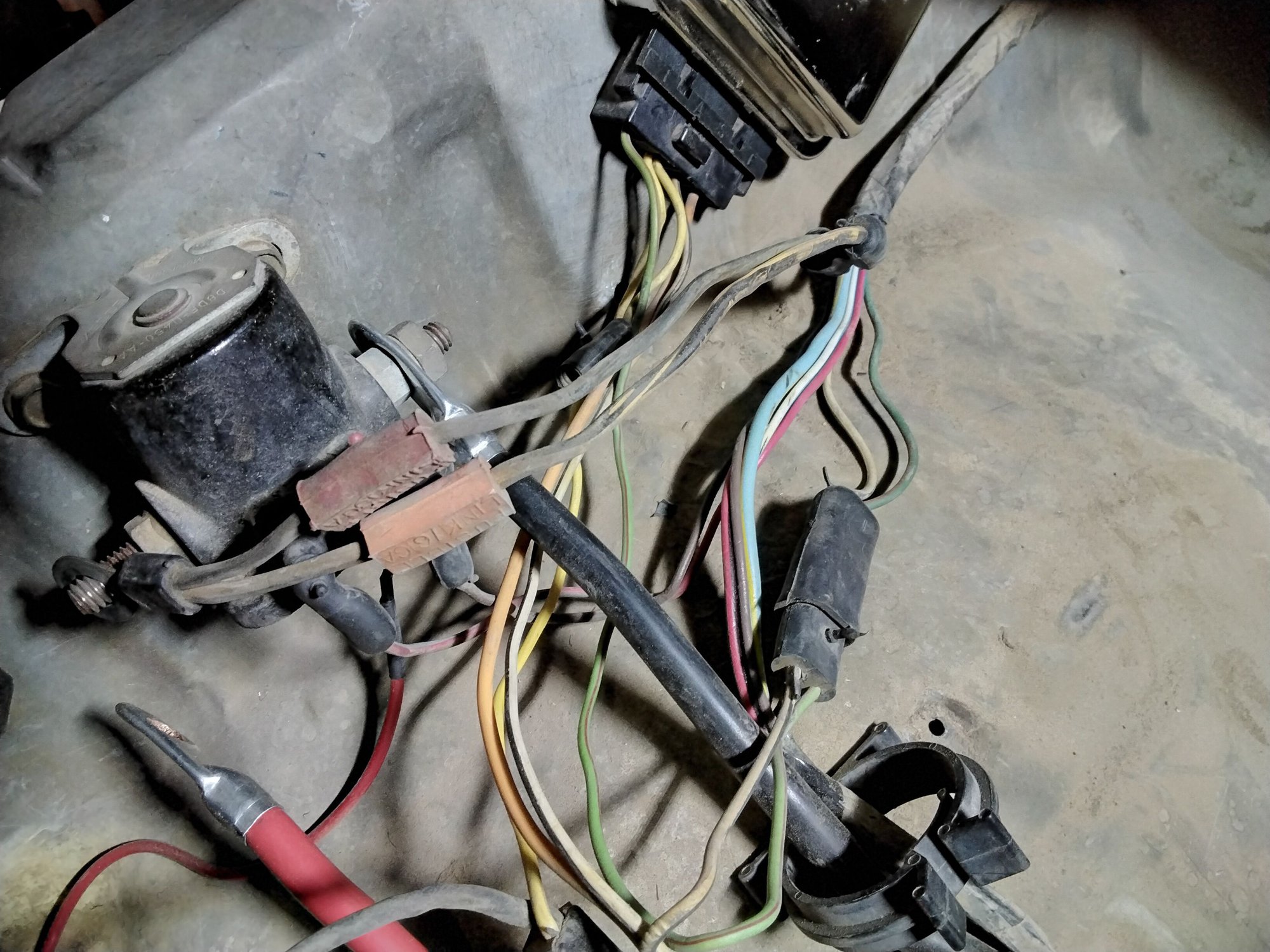 Your fusible links are the red and orange rubber U shaped ones....that even say fusible on them. I can seem them in the pics. And the orange one with a wing on it. Grab a wire on each end of the body and see if they are "stretchy", if they stretch they are bad. That one with the inline glass fuse holder is a PO added one tap in.