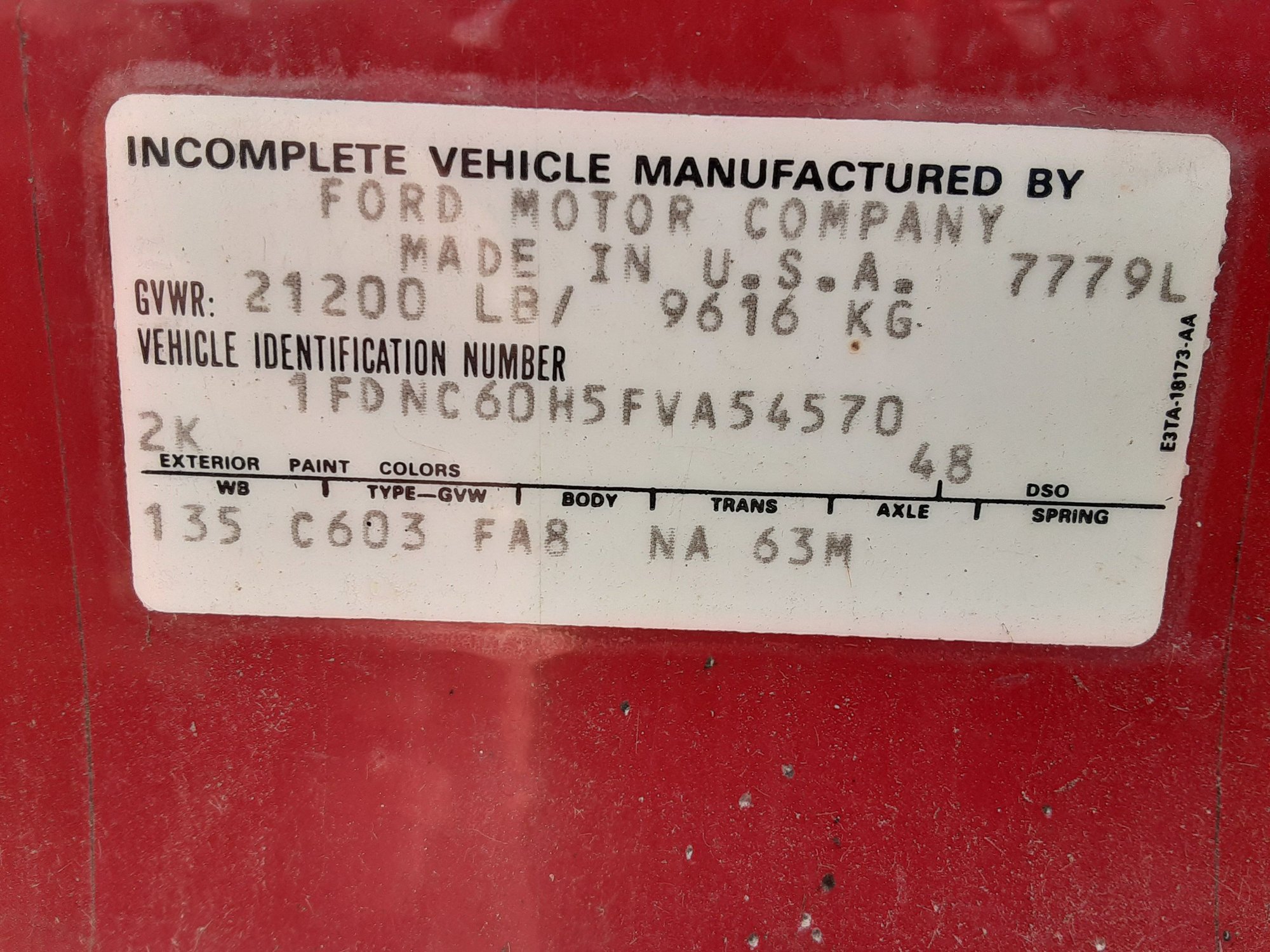 C603 = C600 gas, 21,200 lbs GVWR