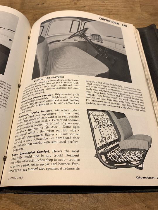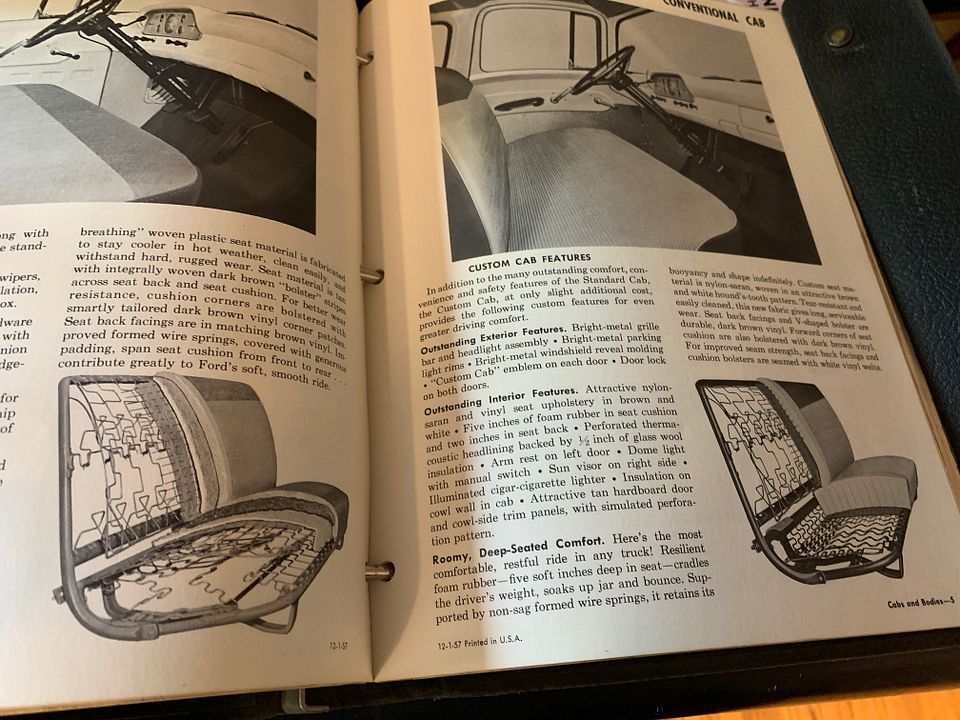 Custom Cabs were a extra cost Item on '57-'60 F series, I don't recall how much but close to $80 I think. For that I believe you got a chrome front bumper, Chrome grill, Chrome windshield trim. Cigarette lighter, better headliner, 'Custom Cab' chrome script, Better windshield wipers, and best of all a inch of extra foam in the seat. Maybe more, but I don't recall Tow hooks on a 4WD? Any way functionally the wipers, Cigarette lighter and seat, the rest were cosmetic, but I liked them. The lighter I guess was good for smokers, but we used the lighter to melt nylon rope ends and similar tasks, and we could use the receptacle as a power source. When it rained two speed or whatever they were, wipers were a big help. If you spent time driving the extra foam in the seat was nice,