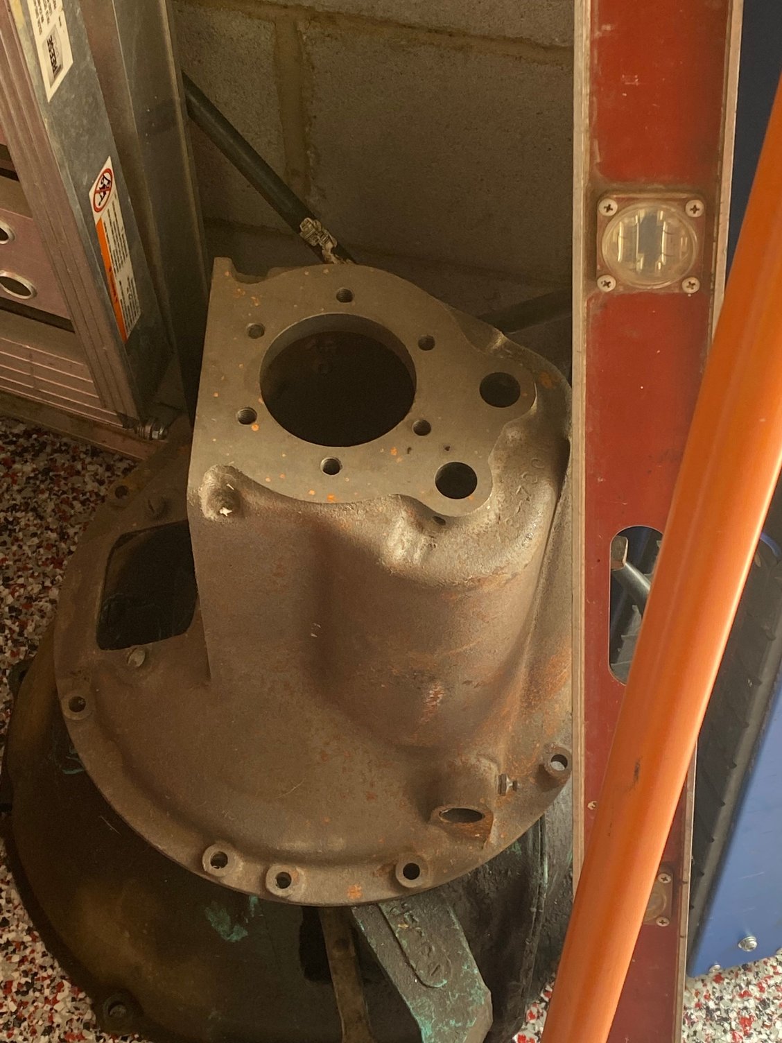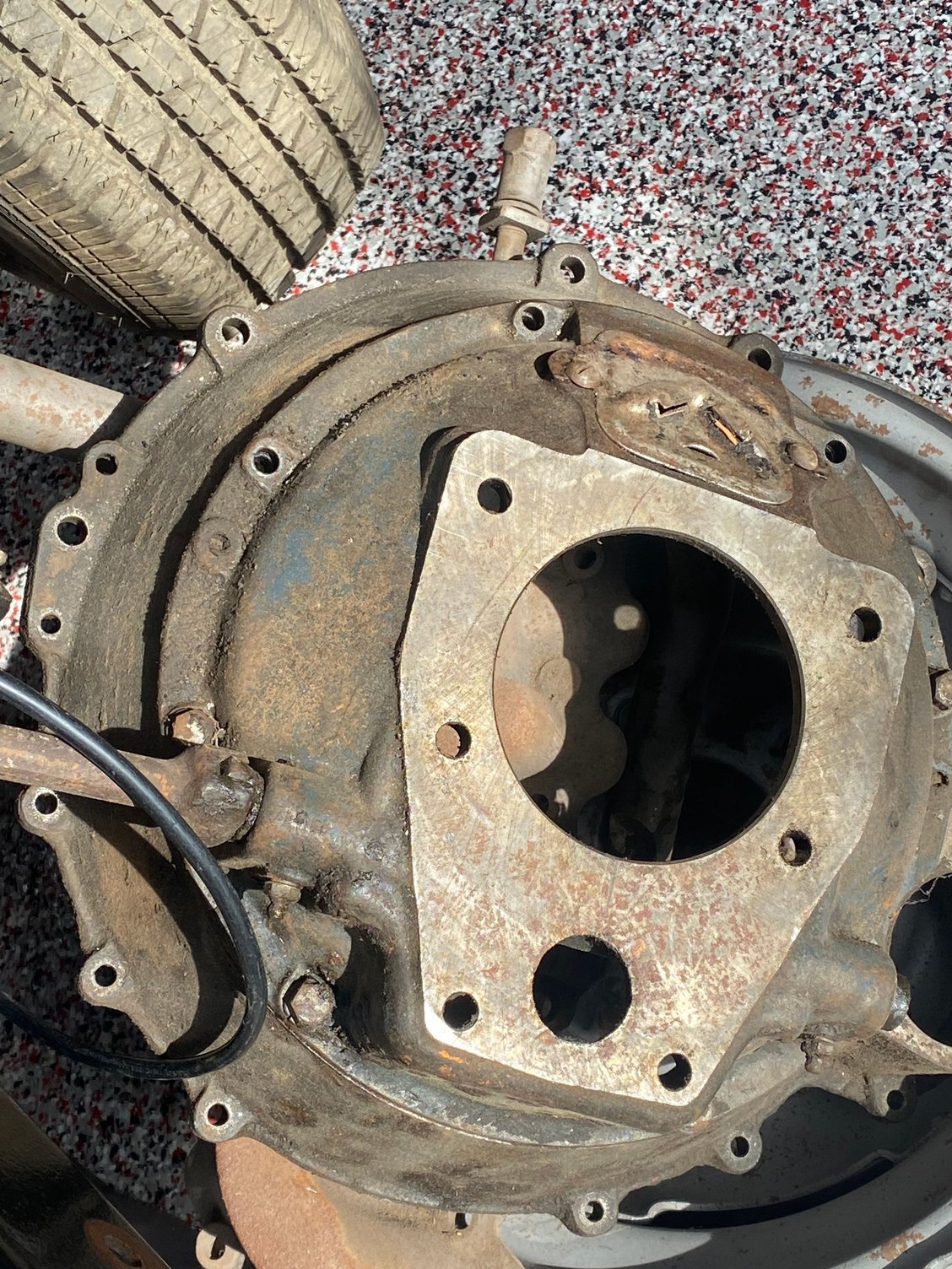 This part is mounted on the front of the heavy duty truck transmission. It is also used to mount a new T10 or other newer transmission to the back of a flathead. I've sold many of these to hot rodders.