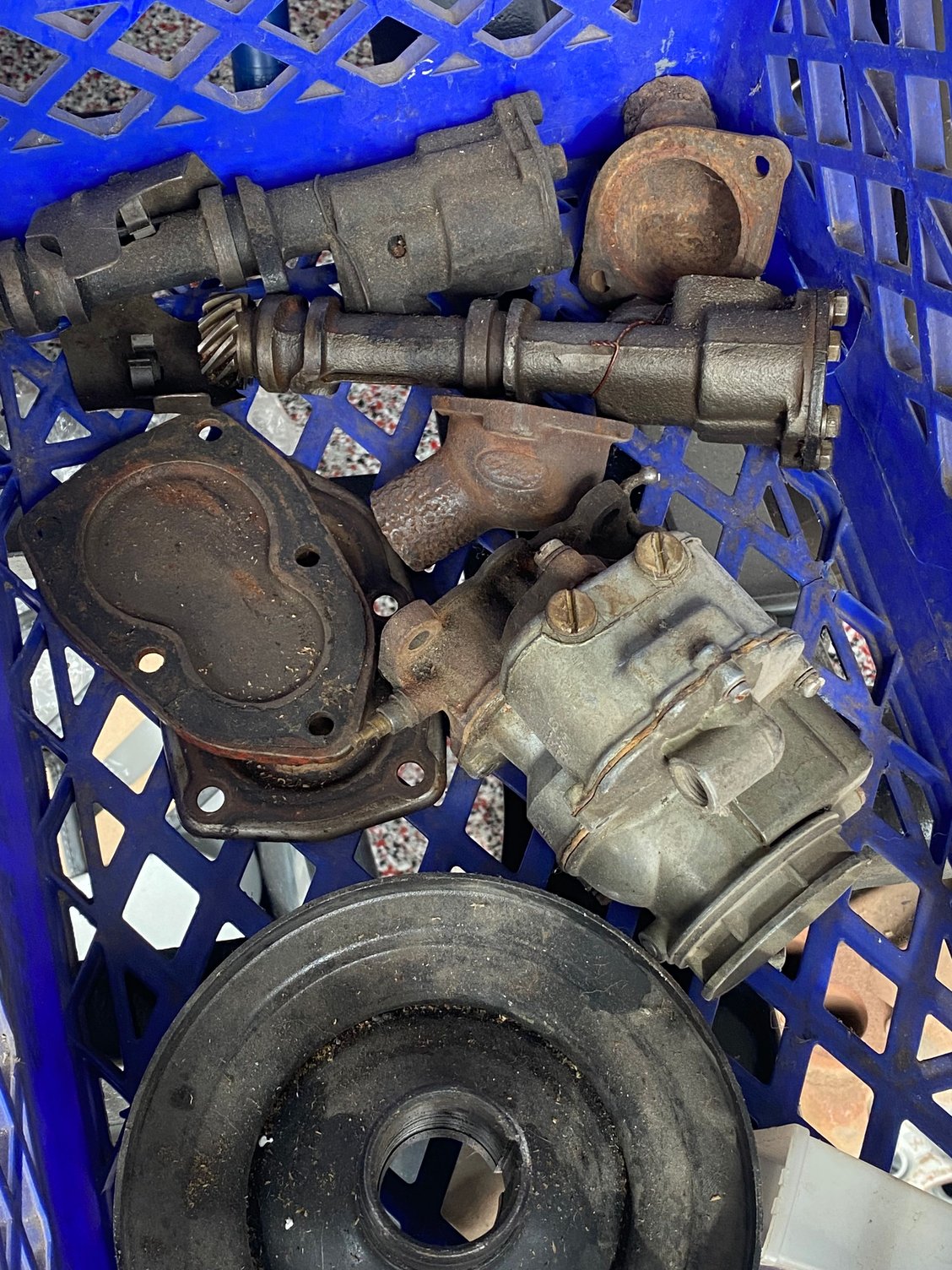 I purchased a 49 F1 that came with a lot of extra parts which was no big deal in NJ as I rented some shop space. I recently relocated to SC and have a two car garage which means a lot of parts are going to have to go. Please take a look at/ identify the parts below and let me know if they are worth selling or should go to scrap. Thank you.